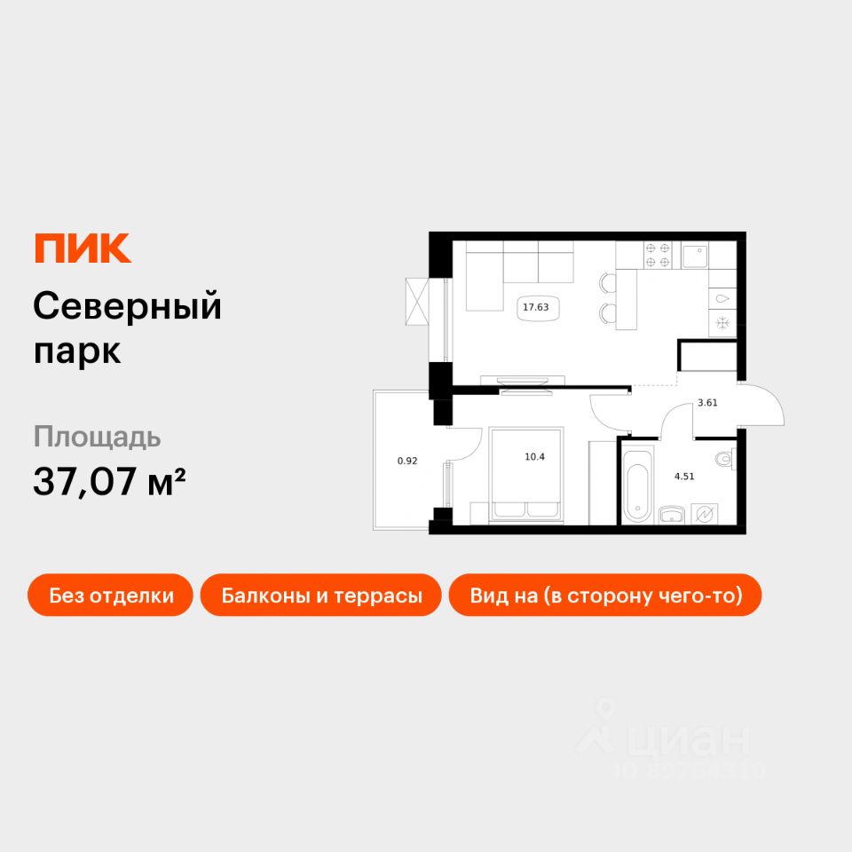 Продаётся 1-комн. квартира площадью 37,07 кв.м на 2 этаже 10 этажного дома (Корпус 10, Секция 2) проекта ПИК Северный парк. Светлый просторный подъезд на уровне земли, функциональная планировка, большие окна, без отделки.