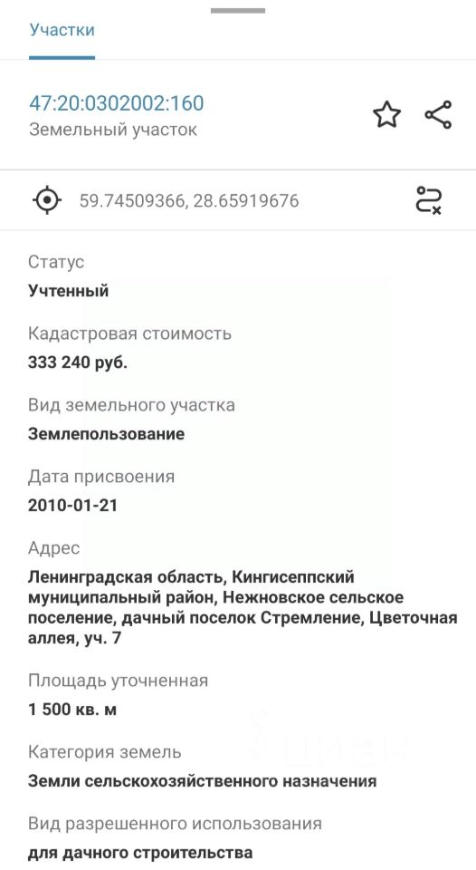 Кадастровый номер: 47:20:0302002:160