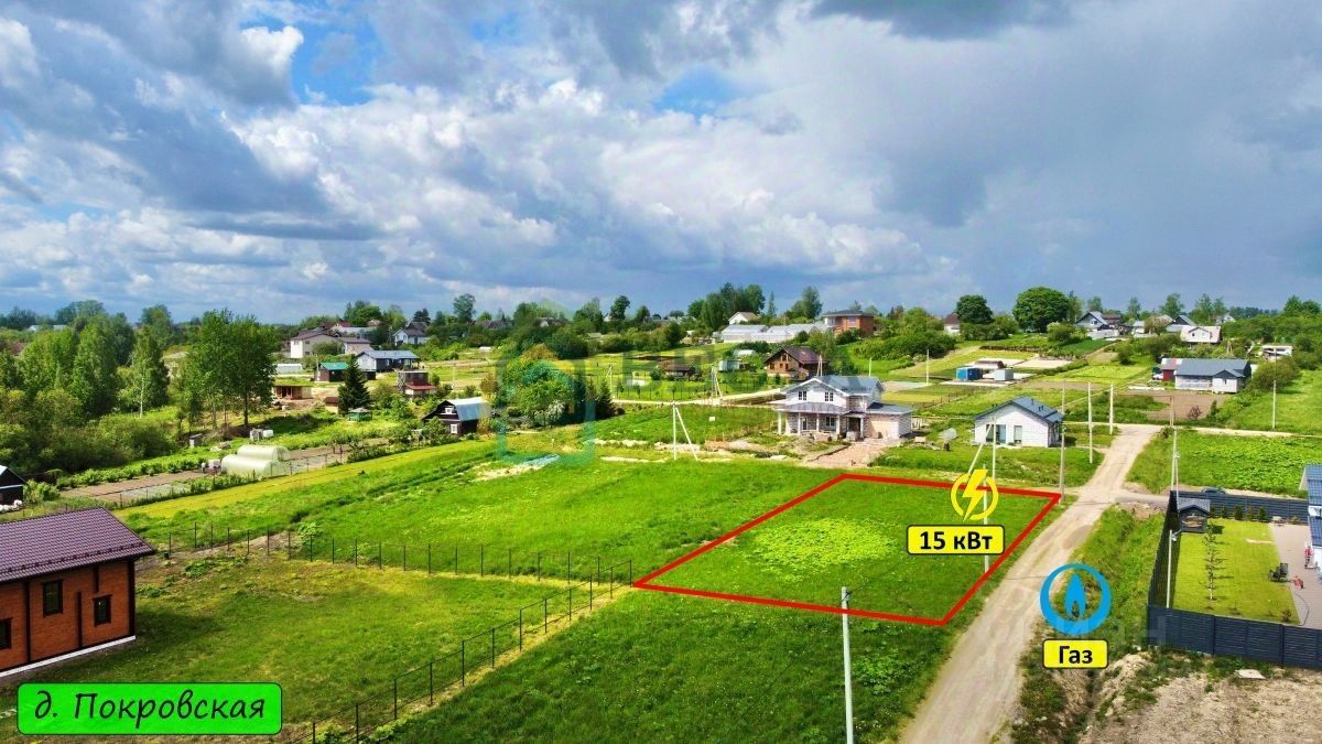 Деревня Покровская давно обжита и заселена. Хороший асфальтный подъезд всего в 300 метрах от участка.