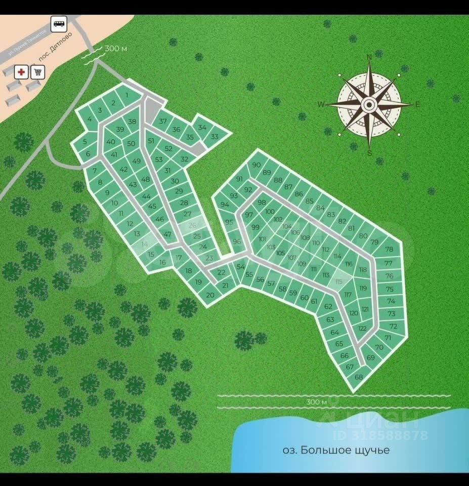 В продаже земельный участок 6,8 соток в КП ''Новое Дятлово'' в шаговой доступности от озера Большое щучье.