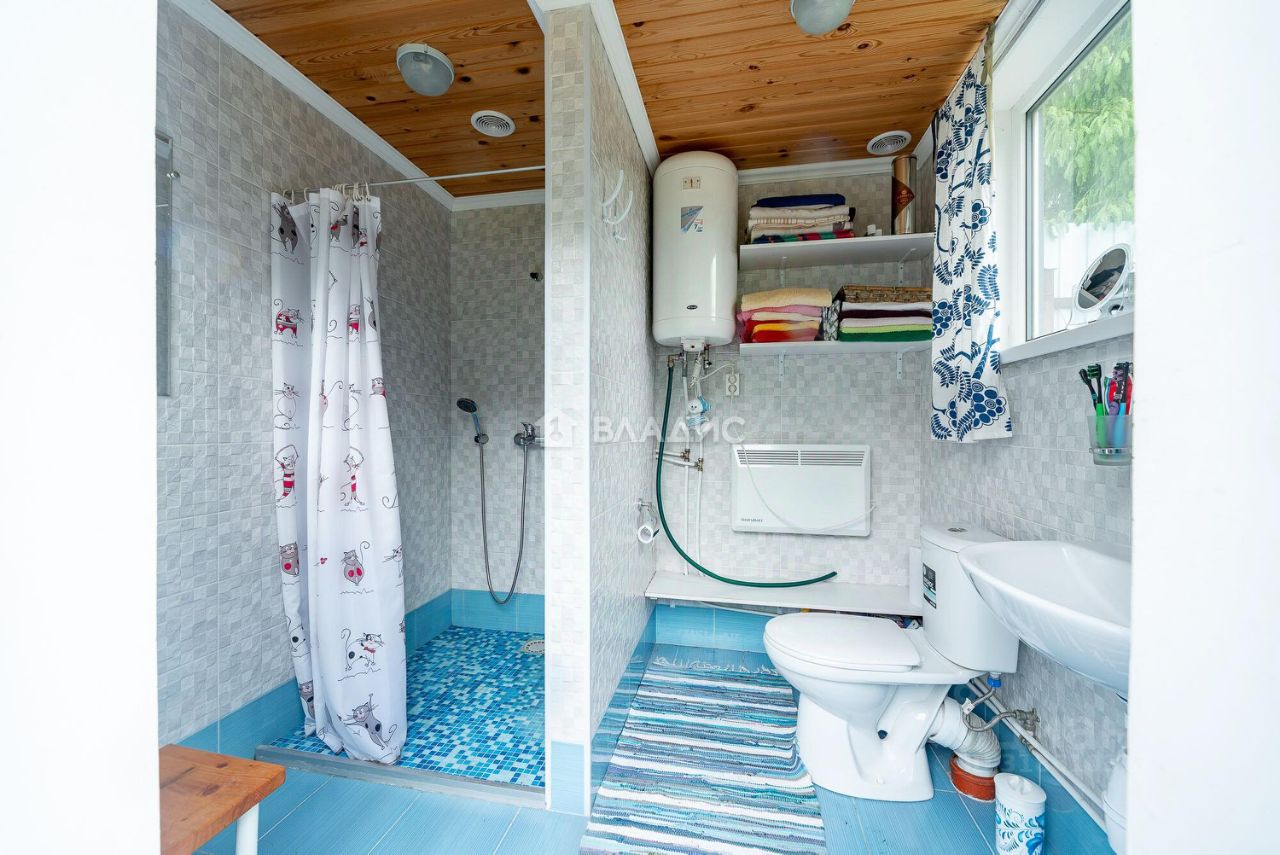 Санузел с душем и туалетом находятся на улице. Построили в 2015г. Материал газоблоки. Септик, электрический водогрей.