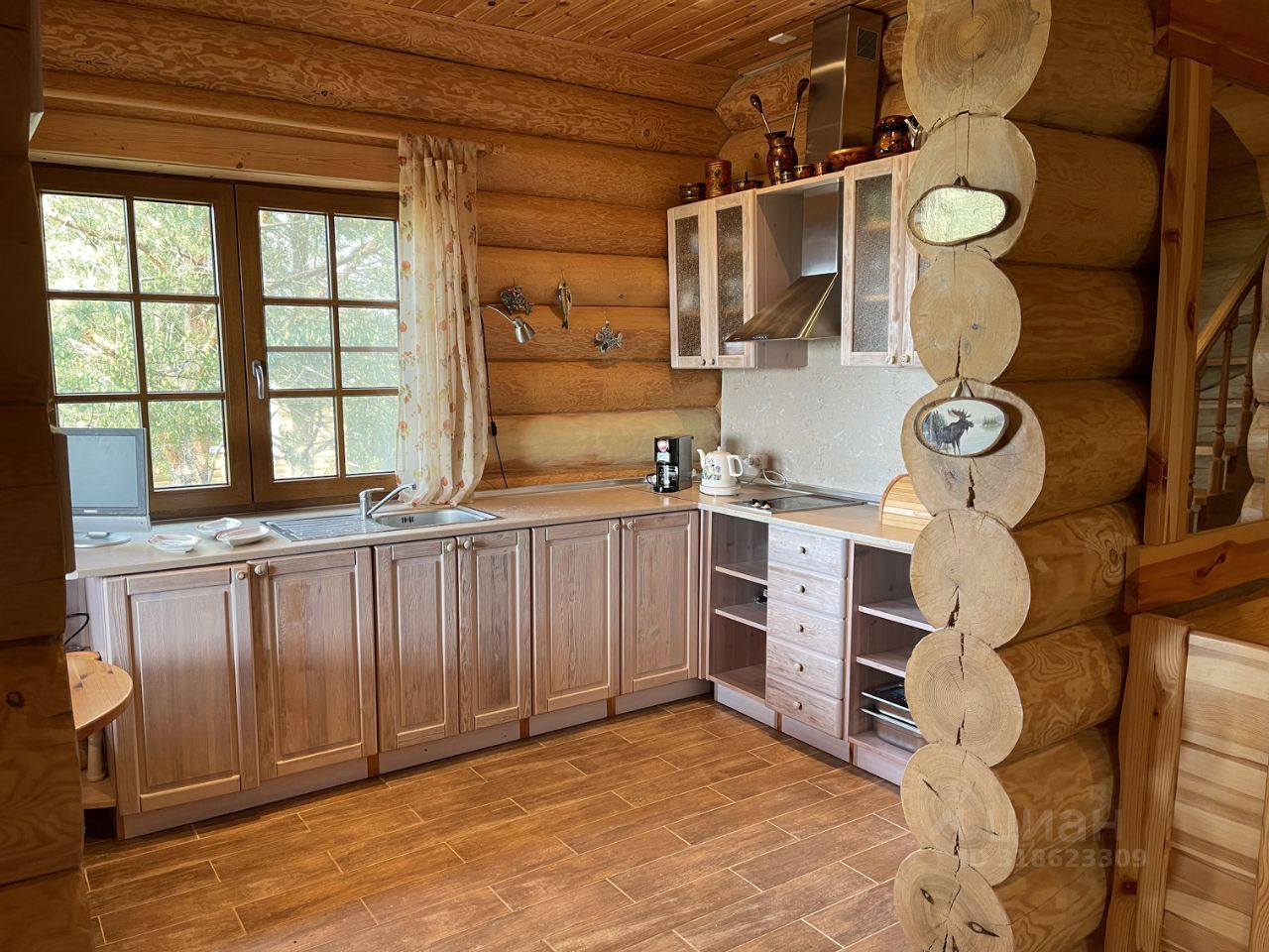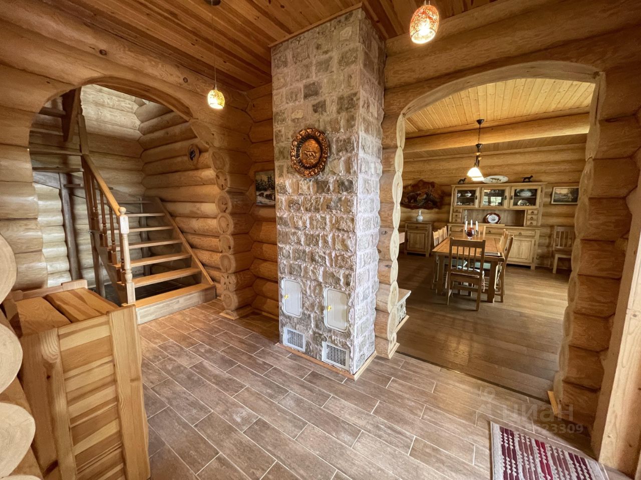 Дом 2007г. готов к проживанию! Продается с мебелью и техникой. Стены: рубленные из бревна. Пол: паркетная доска, кафель, на террасе- деревянная доска. Отопление: камин, печи в комнатах, конвекторы электрические. Общая площадь дома 143,5 м2. Комнаты правильной формы. Терраса. Цоколь с подполом, два санузла. На первом этаже: гостиная 38,8м2, кухня 10,8м2, санузел 6,5м2, прихожая 6,7м2, лестница 5,9м2, тамбур 2м2, терраса 17,7м2. На втором этаже: 3-и комнаты: 21,5м2 +23,8м2+ 6,6м2, холл 10,6м2 и санузел 6,6м2.