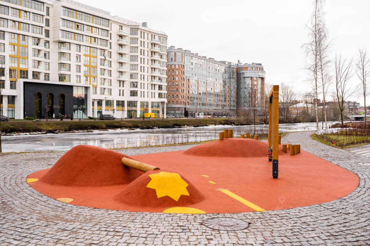 Инфраструктура На территории комплекса предусмотрены: - Собственная школа и детские площадки, - Благоустроенные зоны отдыха и зеленые дворы, - Современные IP-домофоны и круглосуточное видеонаблюдение - Подземный отапливаемый паркинг на 907 мест с доступом на лифте - Собственная набережная в 5 минутах пешком