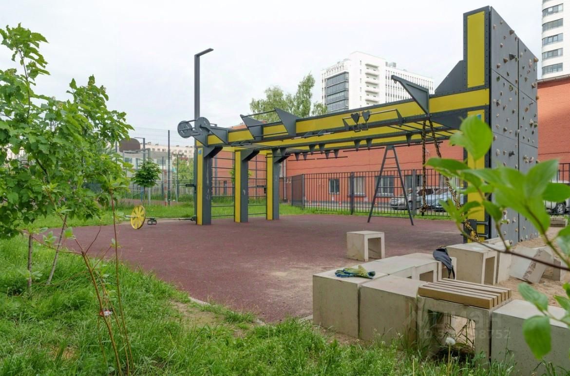 Современный ЖК сделан на хорошем уровне. Внутри закрытого двора (двор без машин) расположены зоны для отдыха людей разных возрастов (детские площадки, work out зоны, лавочки).