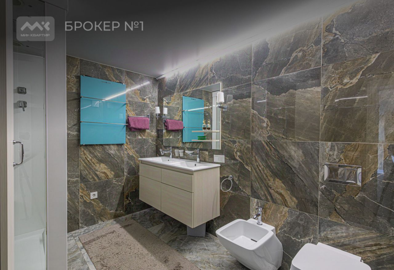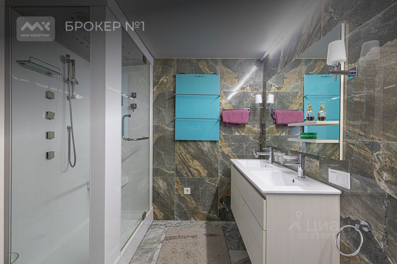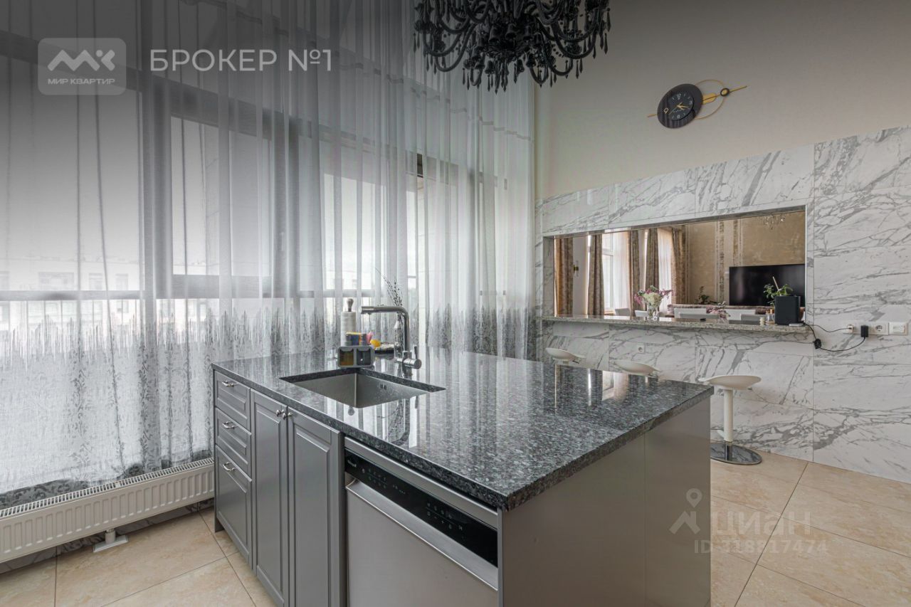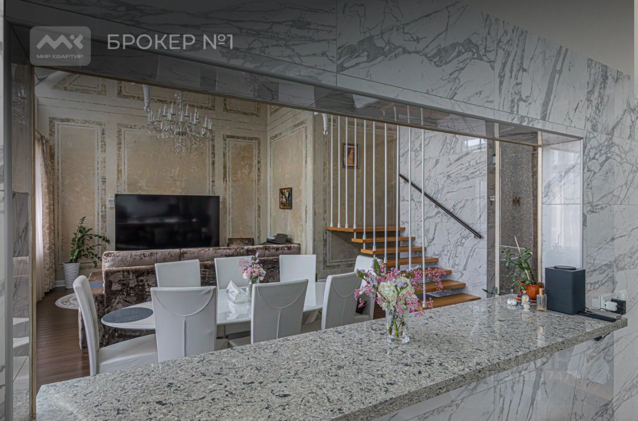 Об объекте: В квартире произведен классический ремонт по индивидуальному дизайн-проекту. На первом этаже расположена кухня 30 м2., которую украшает функциональный остров. С чашечкой кофе вы можете выйти на террасу и насладиться видом ансамбля Смольного собора. Просторную гостиную 44 м2 украшают множественные окна под потолком, открыв жалюзи через них проникает яркий солнечный свет. Высота потолков достигает 5-ти метров. Из хозяйской Спальни 27.5 м2 выход на застекленную лоджию с видом на Неву. Детская 22. 5 м2, совмещенный большой санузел, места хранения, гардероб. Второй свет 30 м2 с комнатой отдыха и своим санузлом. Общая площадь Пентхауса по документам 154 м2, со вторым светом площадь составляет 184 м2.