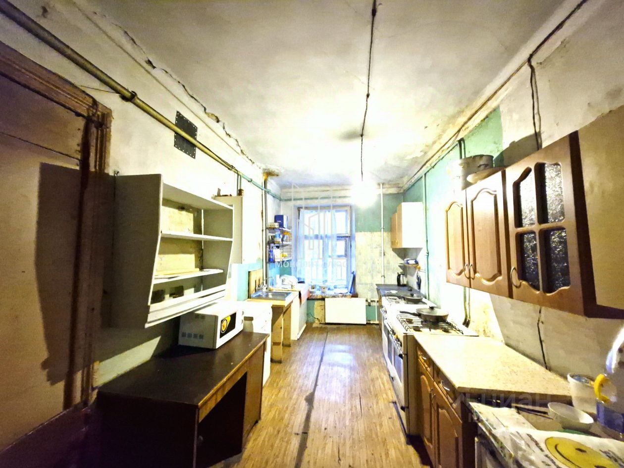 В этой квартире раздельный санузел, просторная ванная в приличном состоянии. Кухня площадью 14 кв. м и коридор требуют ремонта. Здесь еще витает дух старинного Санкт-Петербурга...Арочный проём на входе в комнату... Место для телефонных разговоров в кресле в коридоре...
