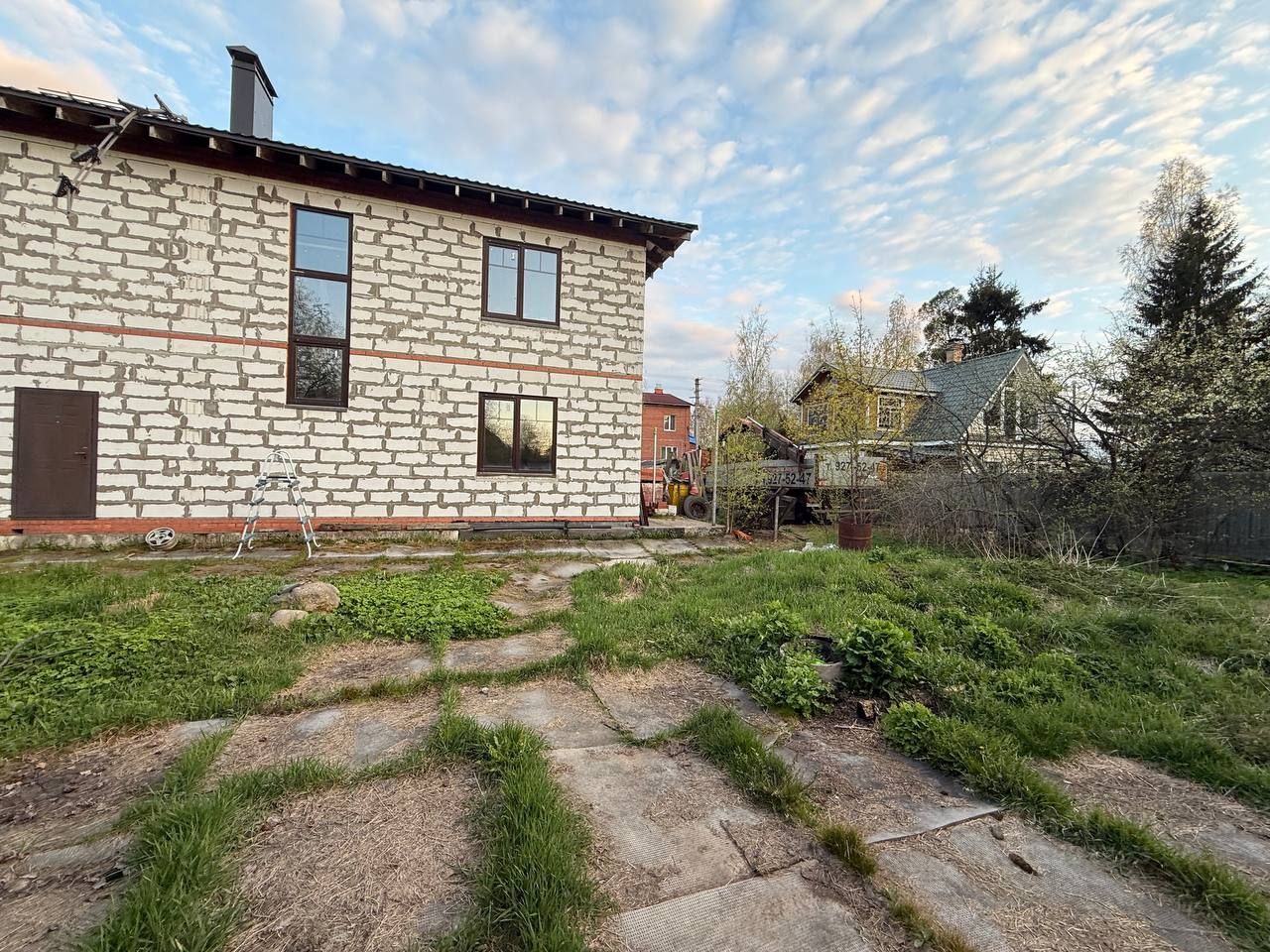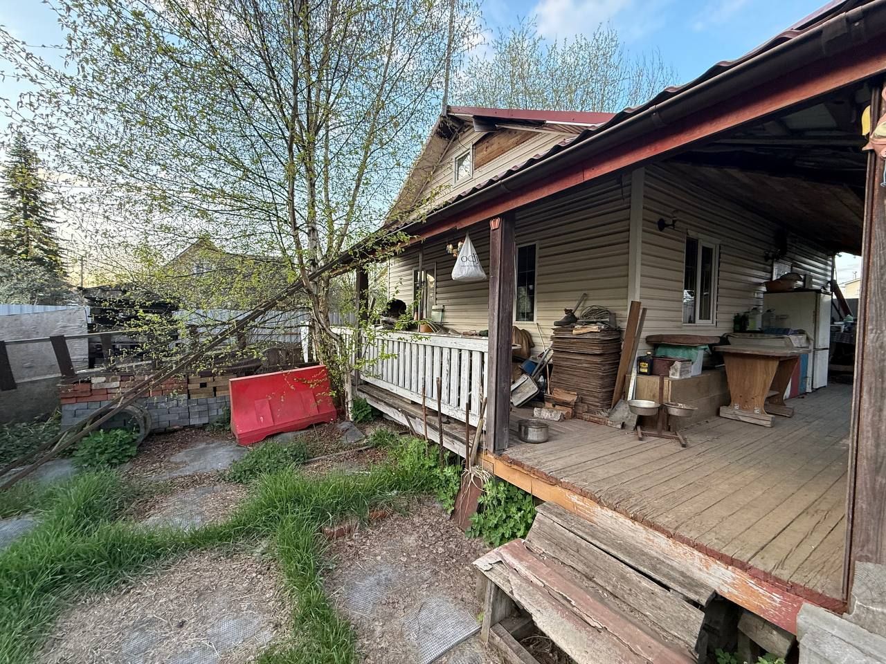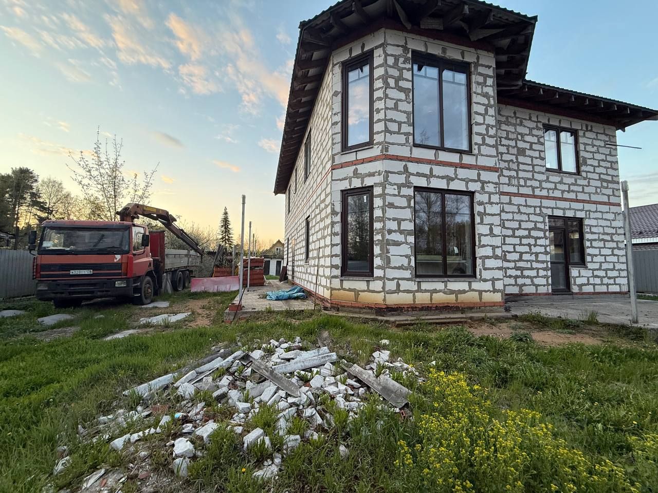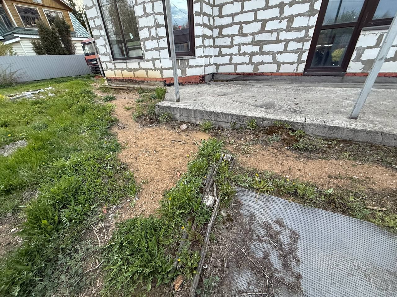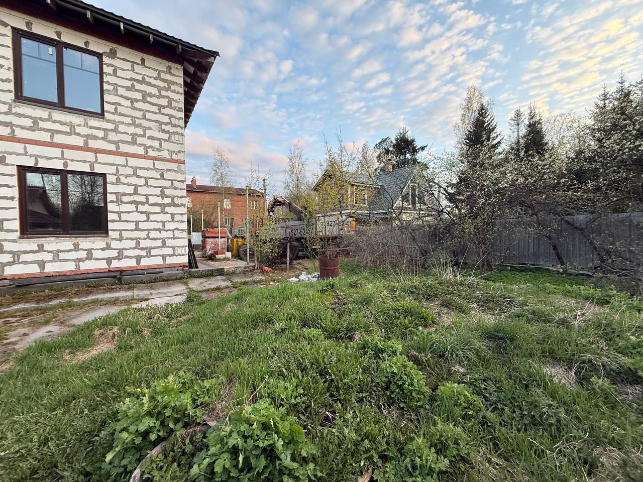 Участок отсыпан. Проведён дренаж. Установлен забор. Все строительные материалы , которые есть в доме , остаются у нового собственника