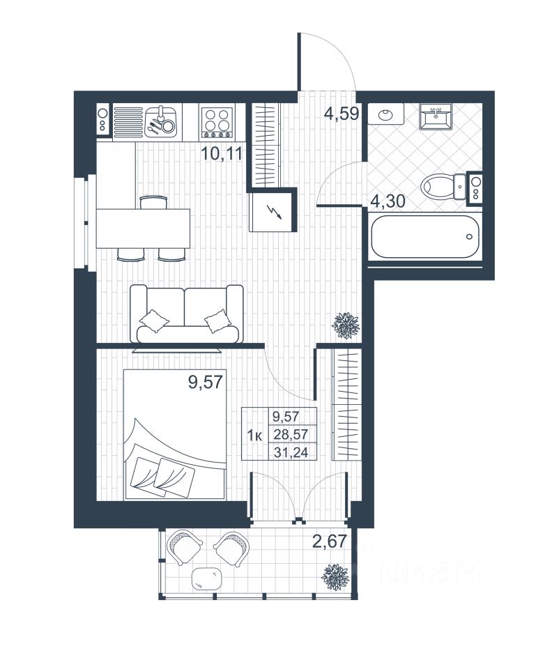 Общая площадь29,37 м2