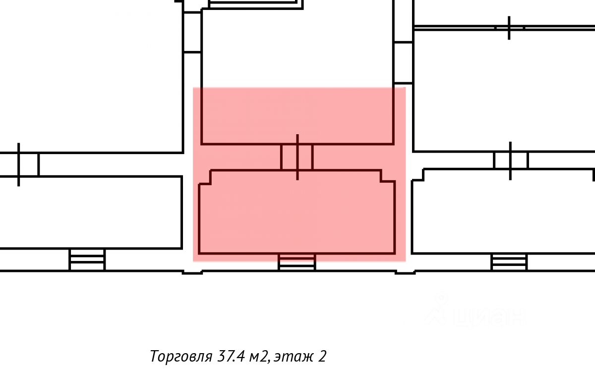 под магазин. Площадь помещения - 37.4 кв. м. 2-й этаж здания. Проведены необходимые инженерные коммуникации: освещение, отопление, выделенная электроэнергия, пожарная сигнализация. В комплексе ведётся круглосуточная охрана.