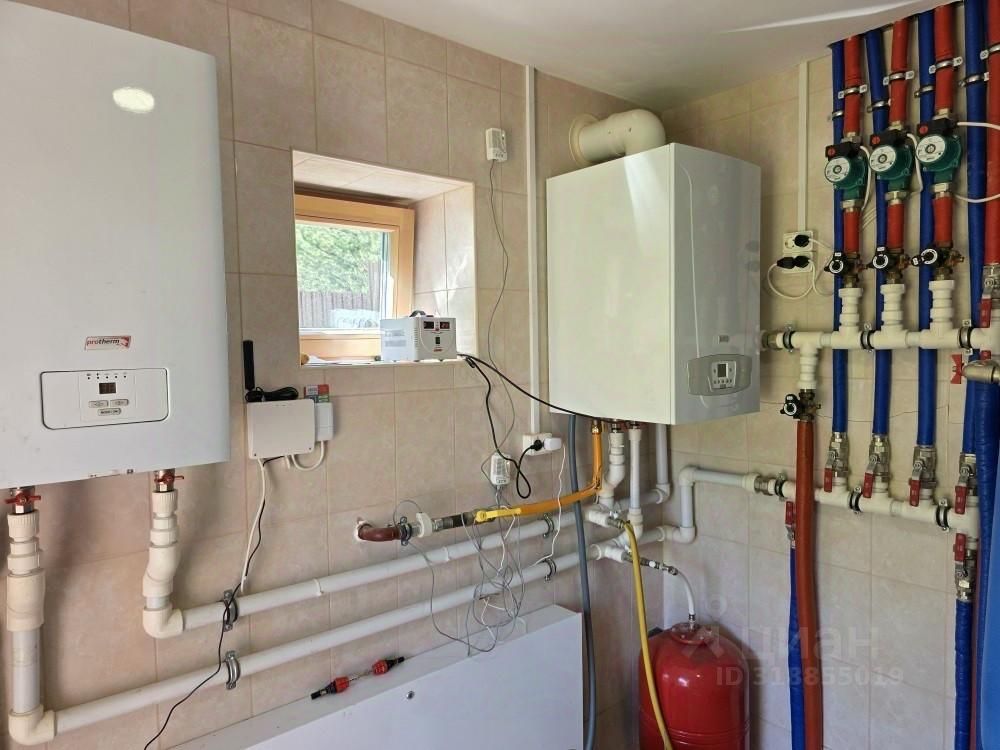 Коммуникации: Магистральный газ. Газовый котел BAXI - 70 кВт. Выделенная электрическая мощность 50 кВт. Водоснабжение скважина. Отопление: газовый котел, водяные радиаторы, камины Канализация: септик Приточно-вытяжная установка Komfovent, которая обеспечивает в каждой комнате дома свежий уличный воздух.