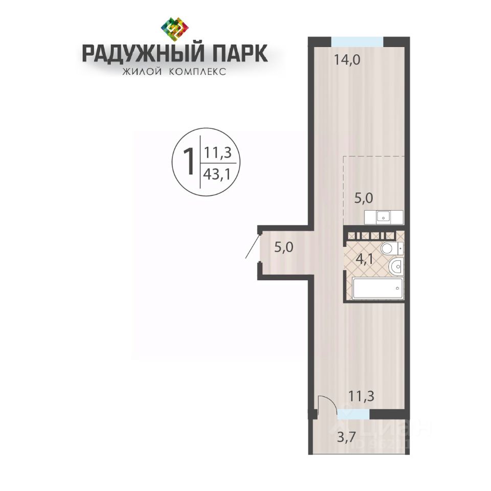 Общая площадь43,1 м2