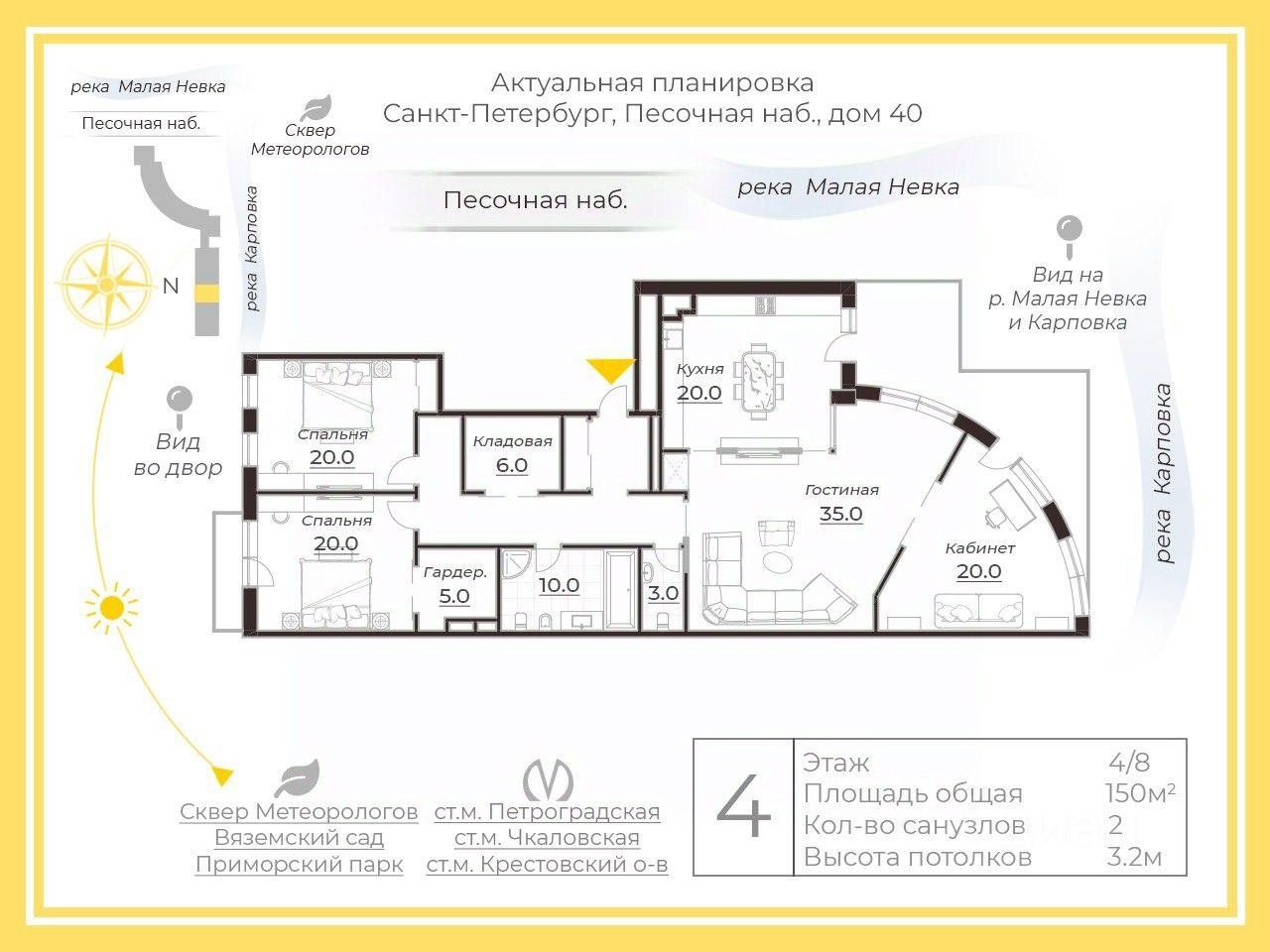 продам 4-к, Песочная набережная, 4067 000 000 ₽