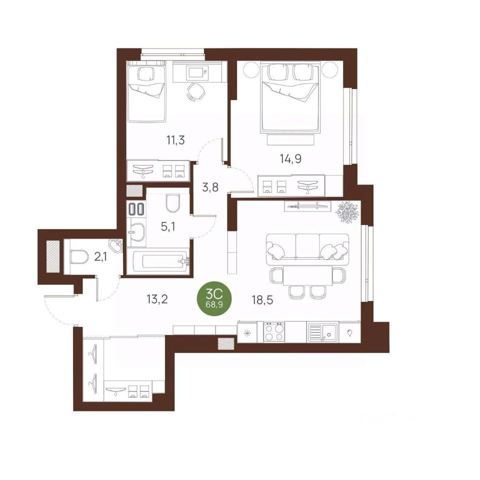 Продаётся 3-комнатная квартира в строящемся доме (Дом 32), срок сдачи: IV-кв. 2027, общей площадью 68.9 кв.м., на 11 этаже. Расположение, транспортная доступностьНовый жилой комплекс комфорт-класса ''Город-парк Ясный Берег'' строится на левом берегу реки Обь, но при этом совсем недалеко от центра Новосибирска. Новый микрорайон расположится рядом с проездом Энергетиков, который переходит в Дмитровский мост. Добраться до самого центра мегаполиса совсем несложно: дорога на автомобиле займет всего десять минут в зависимости от загруженности магистралей (расстояние до исторического центра чуть больше 4 км).На общественном транспорте до центральных районов можно доехать за двадцать пять минут (время в пути зависит и от дорожного трафика, от выбранного маршрута и точного места назначения). В шаговой доступности от ЖК ''Город-парк Ясный Берег'' расположена остановка ''Мост'', откуда курсируют автобусы и маршрутные такси в разные районы Новосибирска.Рядом с новым ЖК проходят крупнейшие транспортные артерии города Октябрьский мост, проезд Энергетиков, улицы Ватутина, Котовского, Станционная и Немировича-Данченко, так что добраться в любую точку города не составит труда как на машине, так и на общественном транспорте.ИнфраструктураЛенинский район, где возводится ''Ясный Берег'', считается престижным, так что уже сейчас новые владельцы квартир города-парка смогут наслаждаться комфортной городской жизнью в тихом микрорайоне. В шаговой доступности: детские садики, общеобразовательные школы, магазины, аптеки, сетевые супермаркеты, кафе, аптеки, медицинские учреждения. За пять минут можно доехать до строительного гипермаркета ''Леруа Мерлен''. Вокруг много мест для отдыха, занятий спортом, прогулок с детьми.Впрочем, согласно концепции, в недалеком будущем жителям ''Города-парка Ясный Берег'' не понадобится часто покидать пределы любимого микрорайона, поскольку новый жилой комплекс будет представлять собой ''город в городе''. На территории ЖК будет большой парк с пешеходными и велосипедными дорожками, местами для отдыха, игровыми зонами. Отличительной особенностью станет детская гоночная трасса точный аналог сочинской ''Формулы-1''.На территории ''Города-парка Ясный Берег'' построят детские площадки с современным игровым оборудованием, школы, развивающие секции и кружки, детские сады (один построен и уже работает). В городе-парке будут и огороженные места для курения, и территории для прогулок с домашними питомцами. В микрорайоне предусмотрено много зон с wi-fi.Надежность застройщикаЗастройщиком проекта является СК ''Аква Сити'', основанная в 2012 году. Генеральным подрядчиком компания ''Метаприбор''. В 2016 году ''Метаприбор'' занял первое место в области по объемам введенного в эксплуатацию жилья (благодаря своевременной сдаче двух корпусов в ЖК ''Город-парк Ясный Берег'').Эти компании осуществляют полный цикл строительства от выбора участков под застройку до внутренней отделки, ввода в эксплуатацию и благоустройству территории новых ЖК.И ''Аква Сити'', и ''Метаприбор'' имеют хорошую р