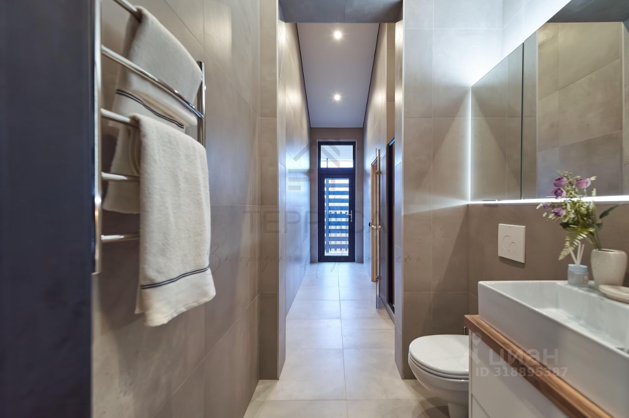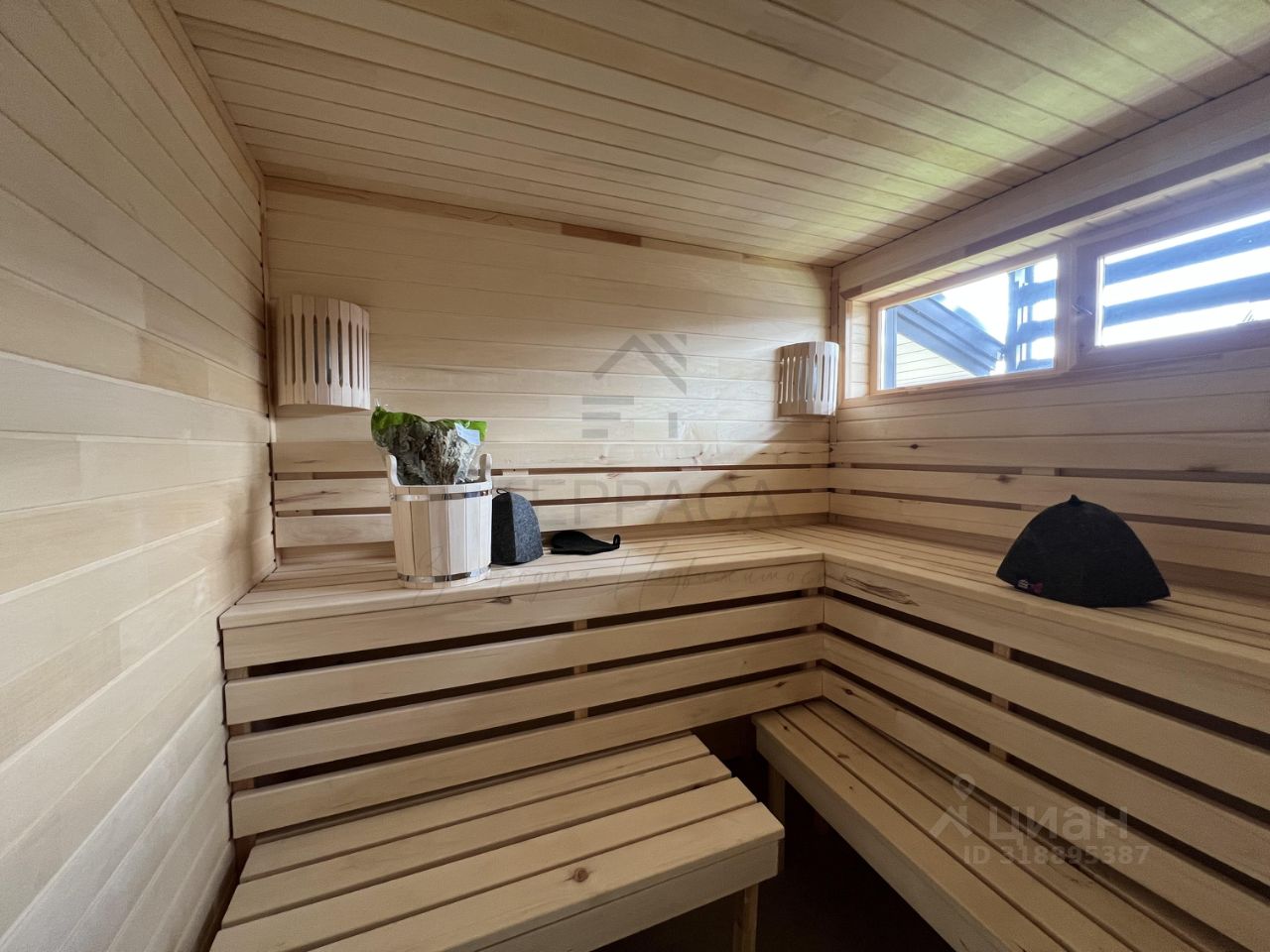Гостиная с крутым камином и зоной под ТВ. 2 с\у в кафеле, подвесная мебель и унитазы с инсталляцией, гигиенический душ. Сауна с окном в парной и техническим трапом для слива, тропический душ с термо регулировкой, ведро для обливания холодной водой. Стиральная машина BOSH. Котельная полностью оборудована и подключена.
