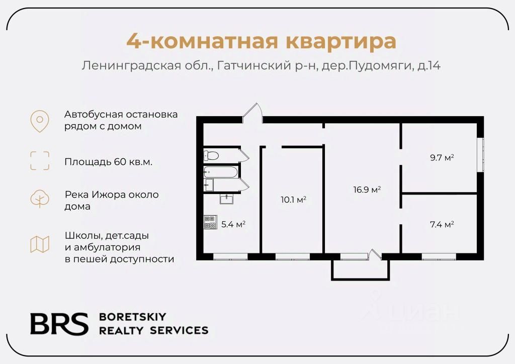 Арт. 83721507. В продаже 4-комнатная квартира в деревне Пудомяги.
