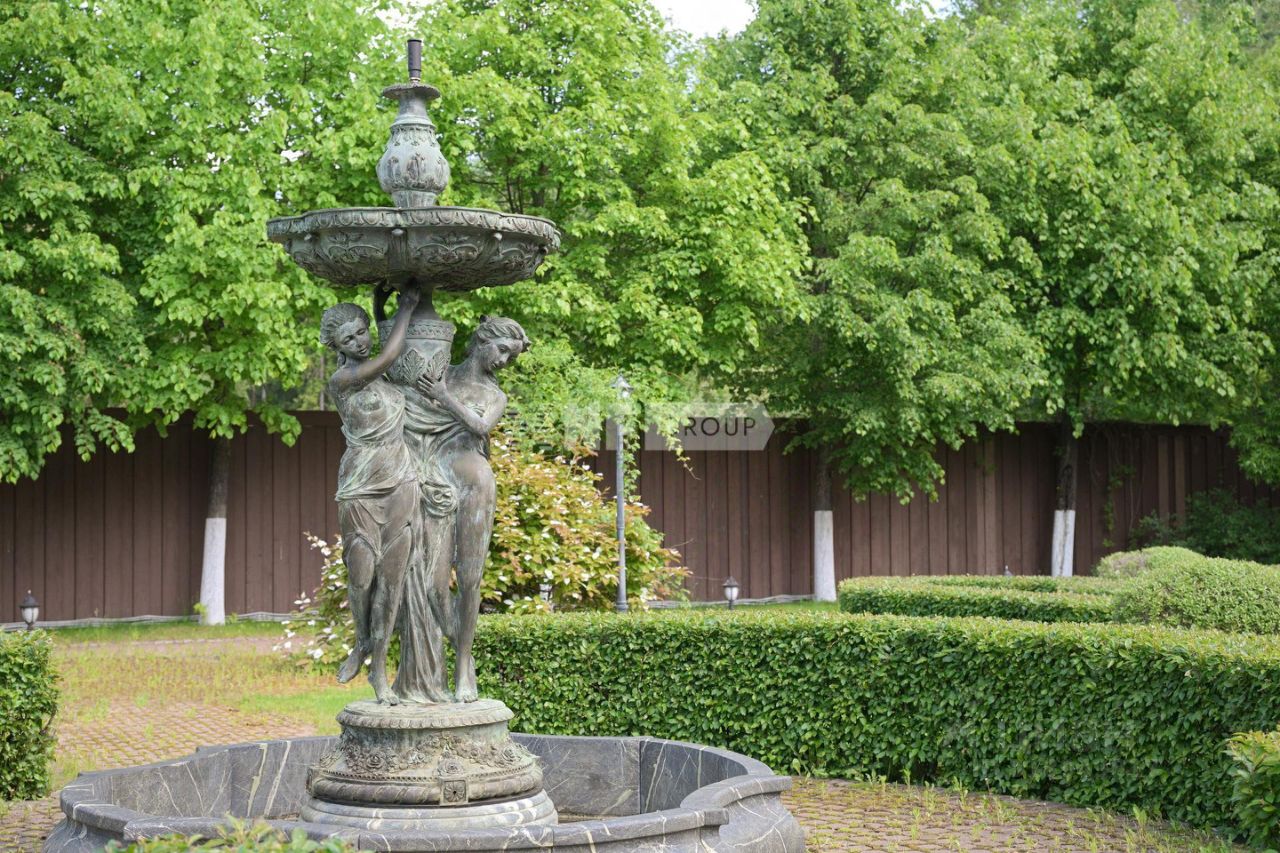 Территория участка - тщательно спроектированная садово-парковая зона с живописно расположенными группами деревьев, освещением, парковыми скульптурами, вазами и другими элементами декора.