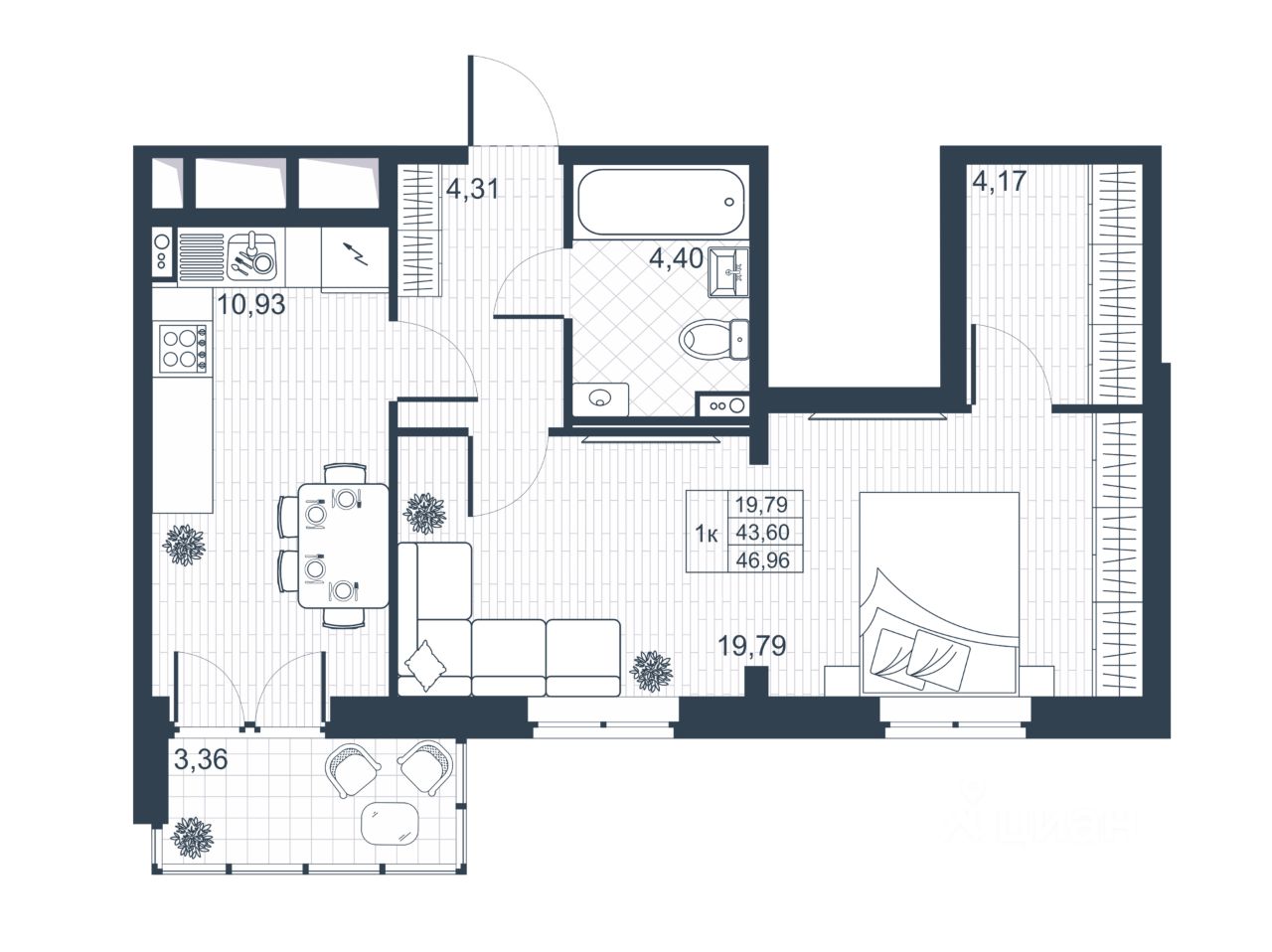 Общая площадь45,28 м2