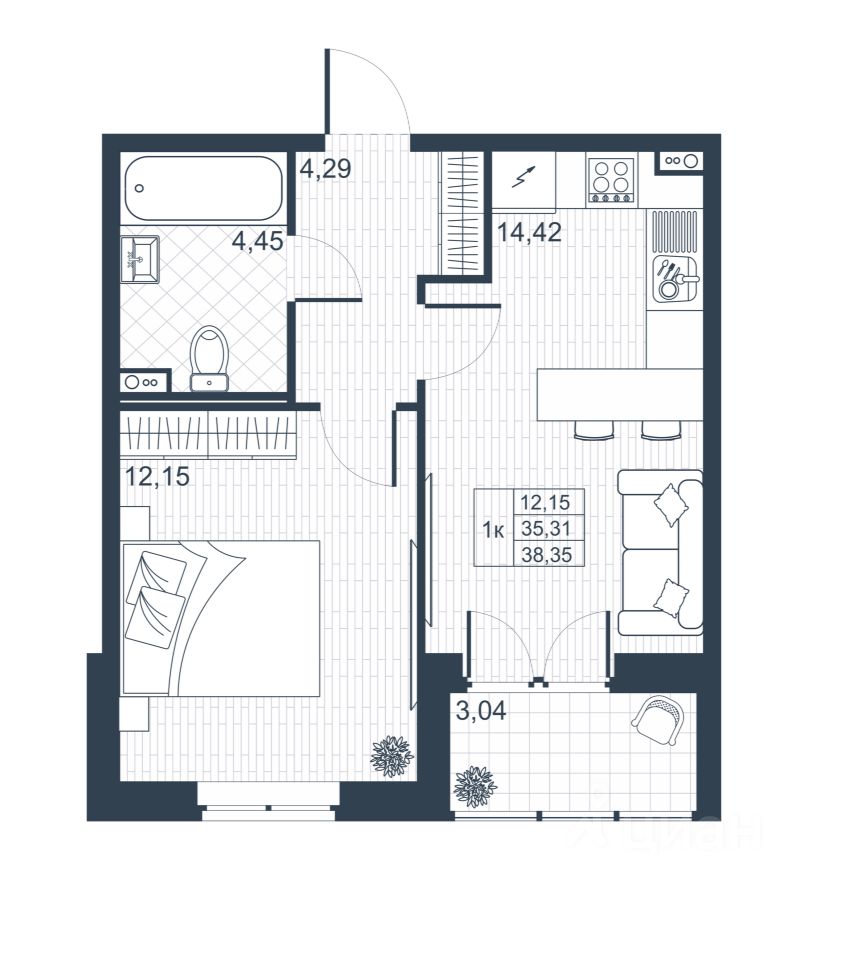 продам 1-к, Ново-Антропшино ЖК, 185 340 350 ₽