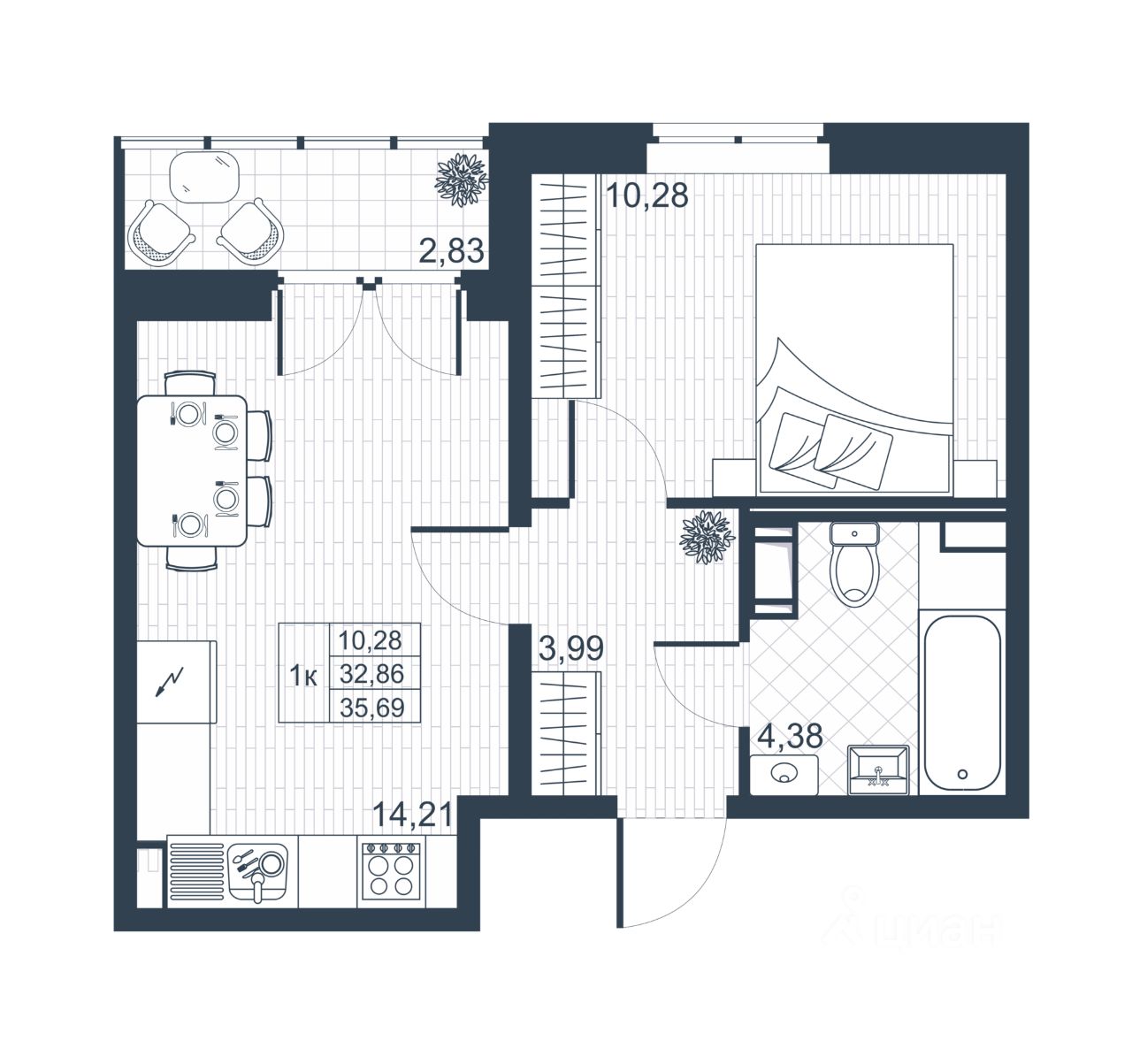 Общая площадь34,28 м2