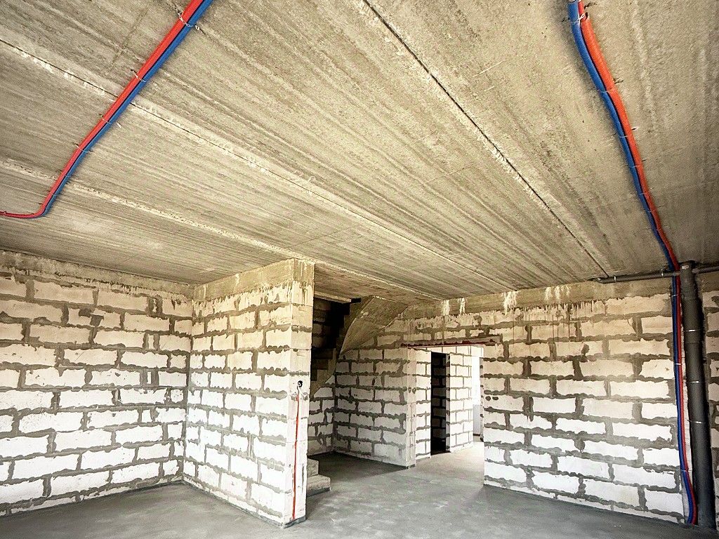 - Отделка: стяжка, система отопления, лестница, котел, разводка водоснабжения.