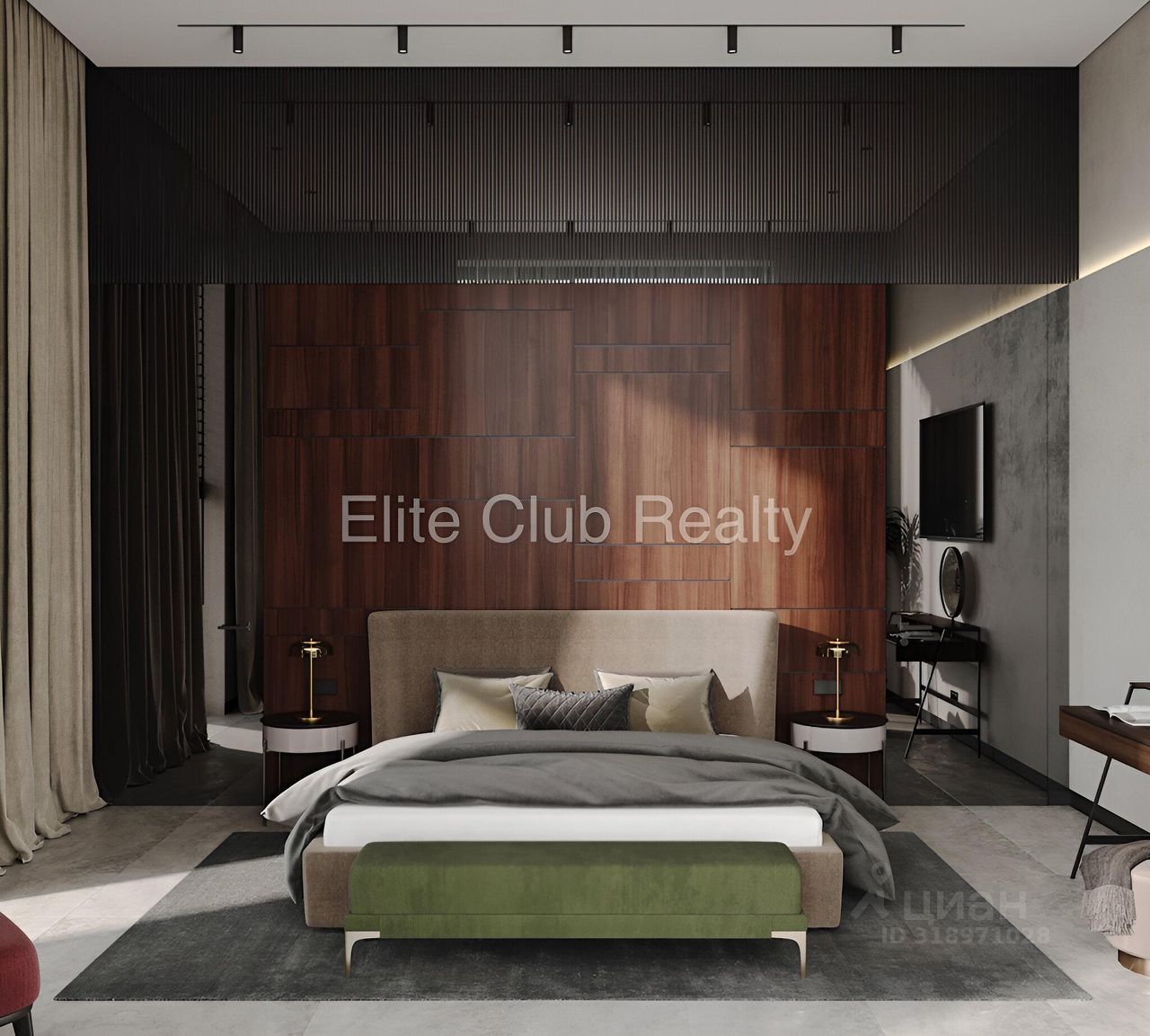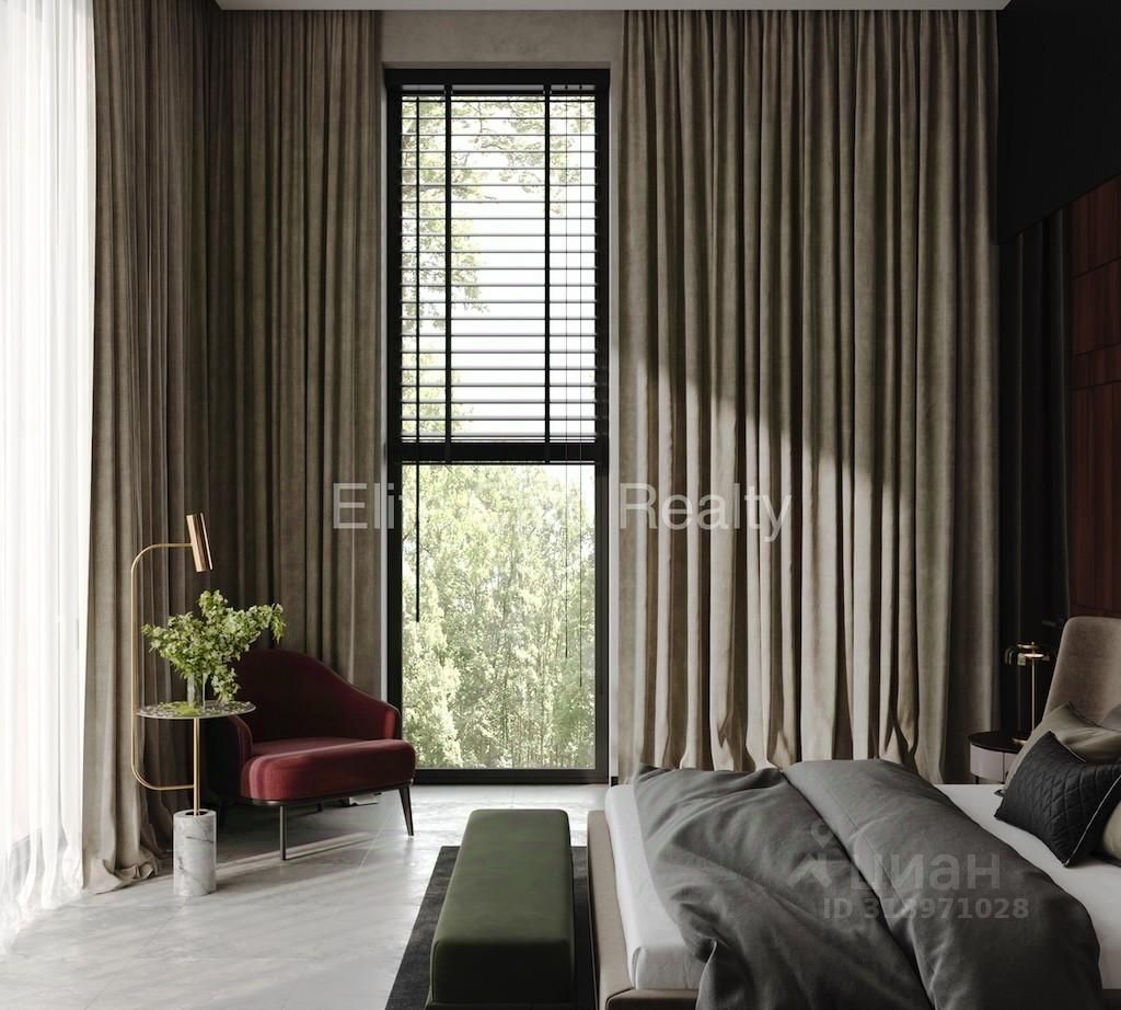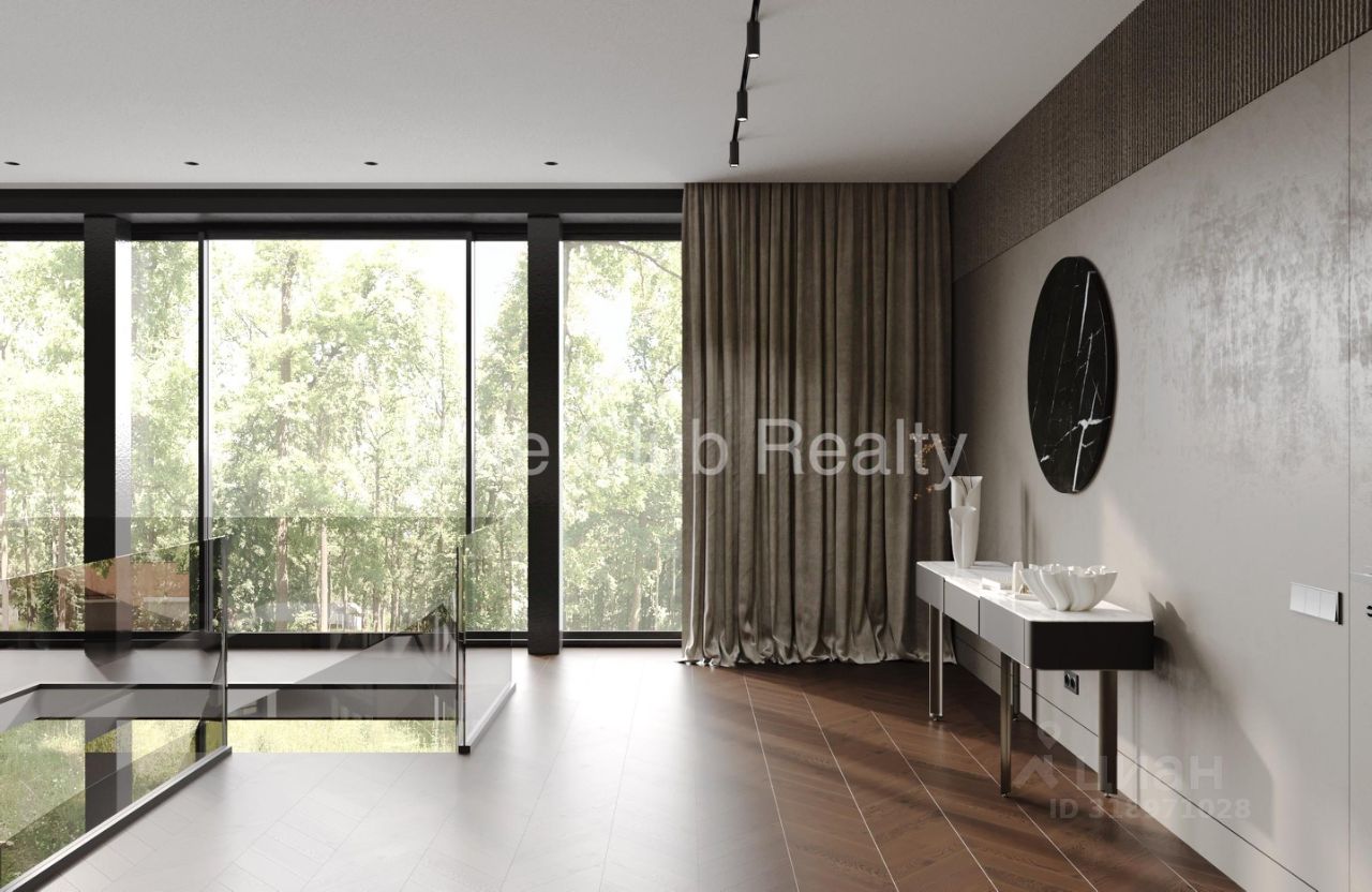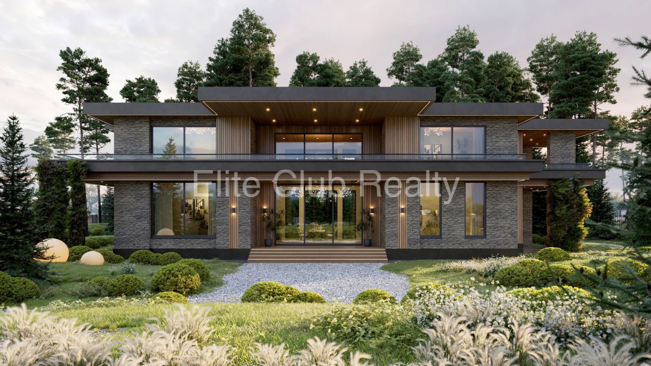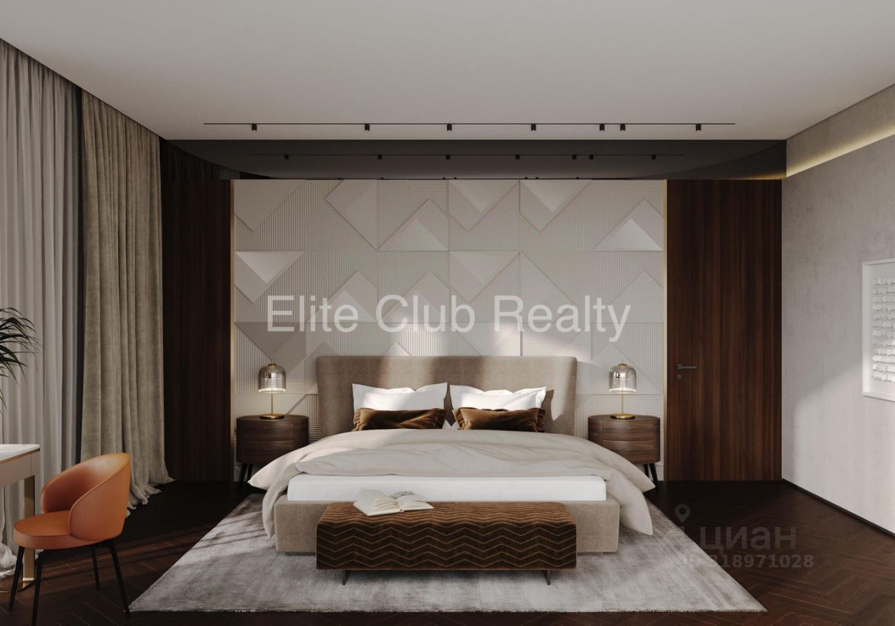 Планировка: * 1 этаж: холл с 4метровыми потолками, эффектная винтовая лестница, кухня с премиальной встроенной техникой и мраморным островом, обеденная зона на 12 персон, гостевая спальня с санузлом, закрытый бассейн с панорамным остеклением и выходом на террасу. * 2 этаж: холллаунж, главная спальня (с ванной и гардеробом), 3 гостевых спальни (одна с террасой), функциональный и элегантный дизайн в нейтральных тонах. * Удобства: лифт, парящая лестница.