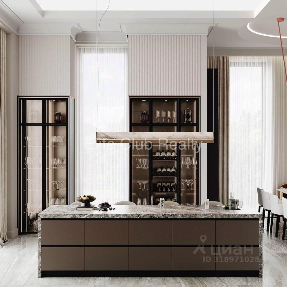 Планировка: * 1 этаж: холл с 4метровыми потолками, эффектная винтовая лестница, кухня с премиальной встроенной техникой и мраморным островом, обеденная зона на 12 персон, гостевая спальня с санузлом, закрытый бассейн с панорамным остеклением и выходом на террасу.