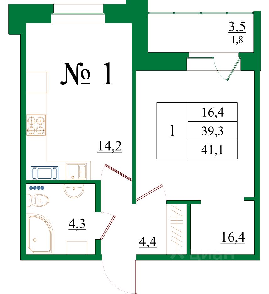 Продаётся 1-комнатная квартира в строящемся доме (Корпус 5), срок сдачи: III-кв. 2025, общей площадью 41.1 кв.м., на 1 этаже. Ленинградская область, Гатчина, Красносельское шоссе
