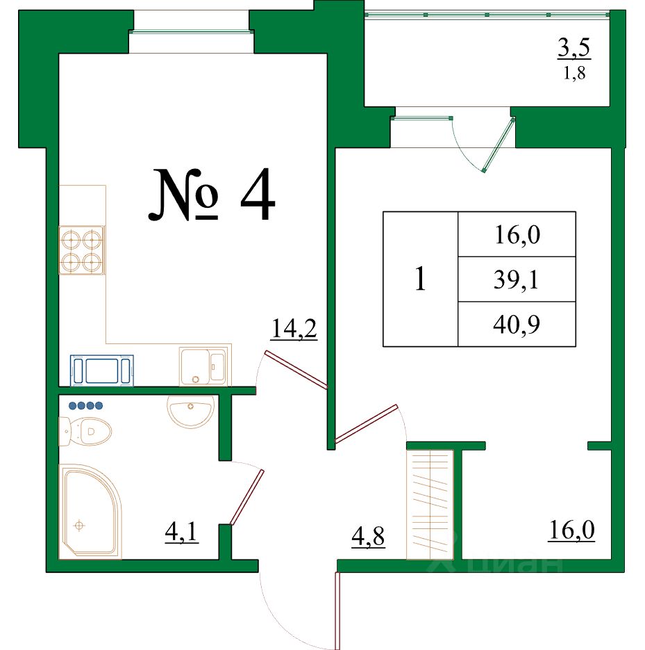 Продаётся 1-комнатная квартира в строящемся доме (Корпус 3), срок сдачи: III-кв. 2025, общей площадью 40.9 кв.м., на 6 этаже. Ленинградская область, Гатчина, Красносельское шоссе