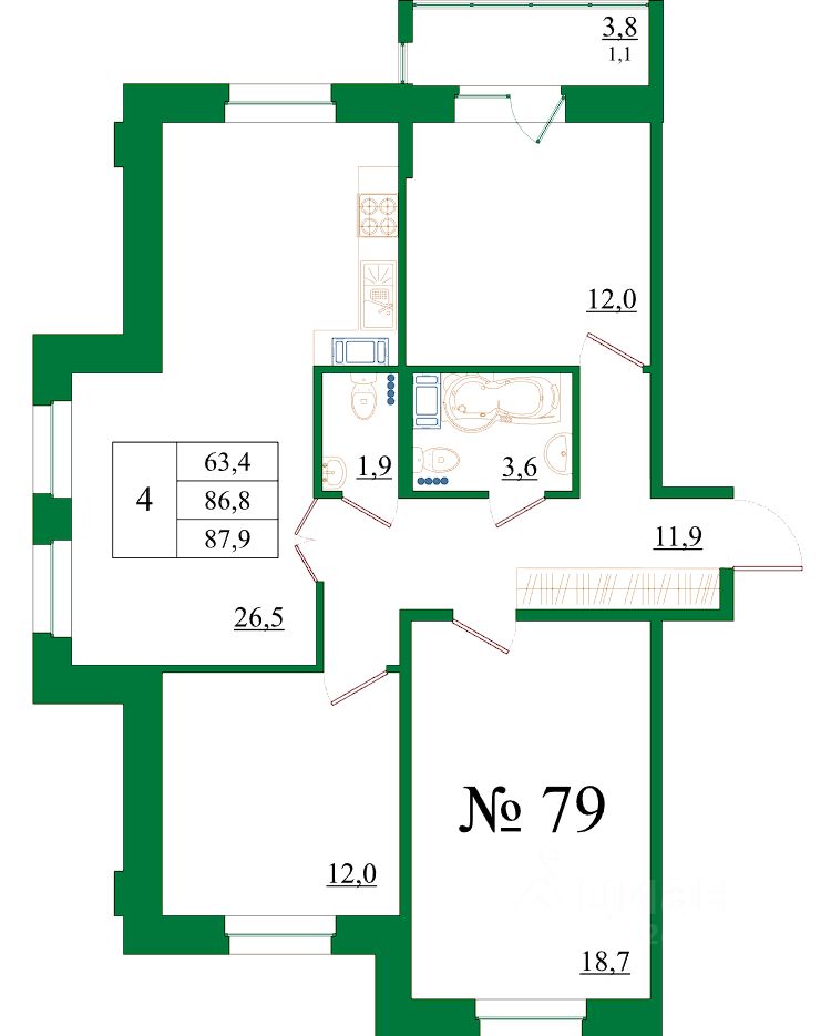 Продаётся 4-комнатная квартира в строящемся доме (Корпус 5), срок сдачи: III-кв. 2025, общей площадью 87.9 кв.м., на 2 этаже. Ленинградская область, Гатчина, Красносельское шоссе