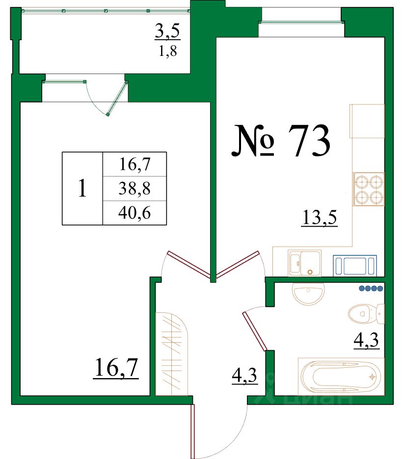 Продаётся 1-комнатная квартира в сданном доме (Корпус 1), срок сдачи: IV-кв. 2024, общей площадью 40.6 кв.м., на 6 этаже. Ленинградская область, Гатчина, Красносельское шоссе