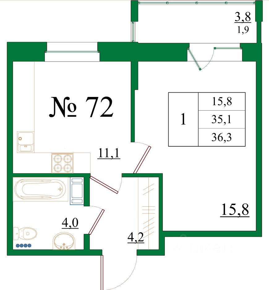 Продаётся 1-комнатная квартира в сданном доме (Корпус 1), срок сдачи: IV-кв. 2024, общей площадью 36.3 кв.м., на 1 этаже. Ленинградская область, Гатчина, Красносельское шоссе