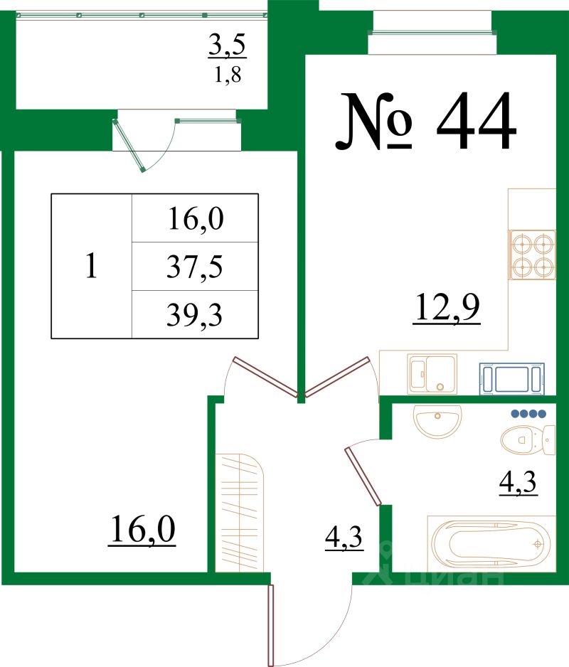 Продаётся 1-комнатная квартира в строящемся доме (Корпус 6), срок сдачи: IV-кв. 2025, общей площадью 39.3 кв.м., на 5 этаже. Ленинградская область, Гатчина, Красносельское шоссе