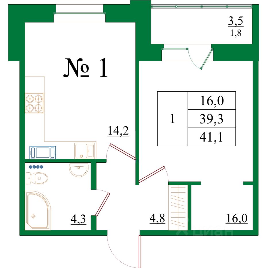 Продаётся 1-комнатная квартира в строящемся доме (Корпус 3), срок сдачи: III-кв. 2025, общей площадью 41.1 кв.м., на 1 этаже. Ленинградская область, Гатчина, Красносельское шоссе