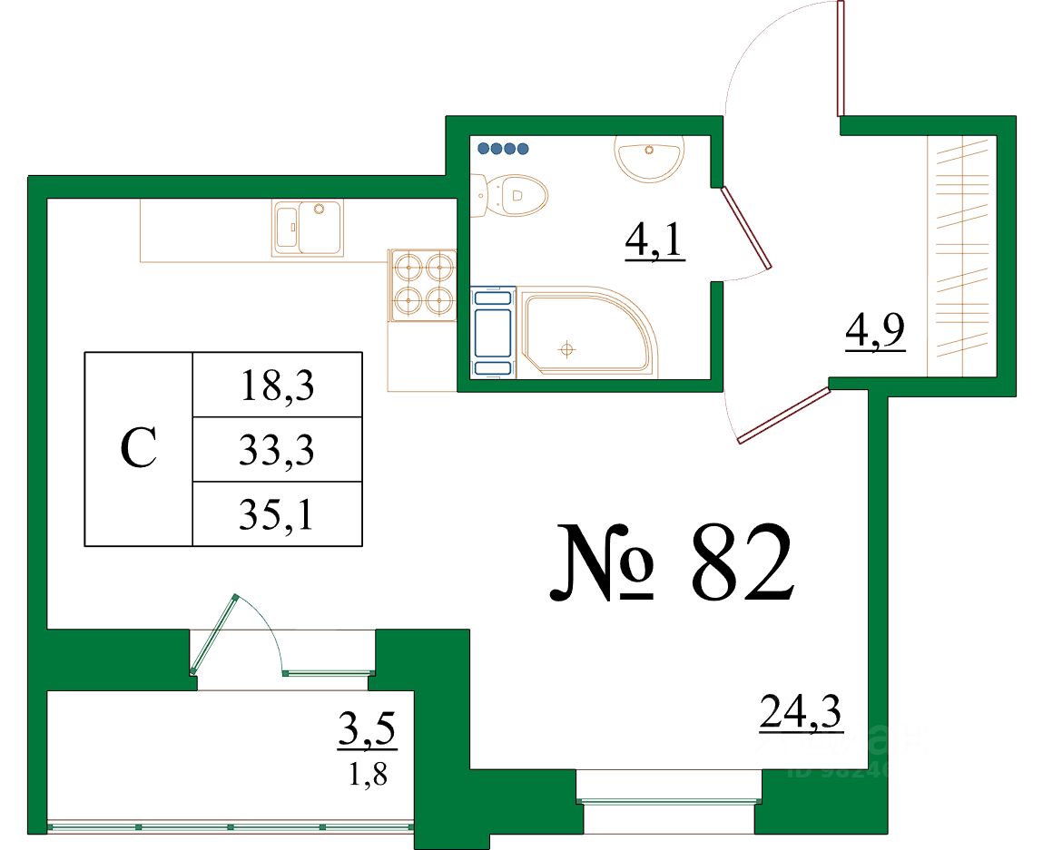 Продаётся студия в строящемся доме (Корпус 5), срок сдачи: III-кв. 2025, общей площадью 35.1 кв.м., на 4 этаже. Ленинградская область, Гатчина, Красносельское шоссе