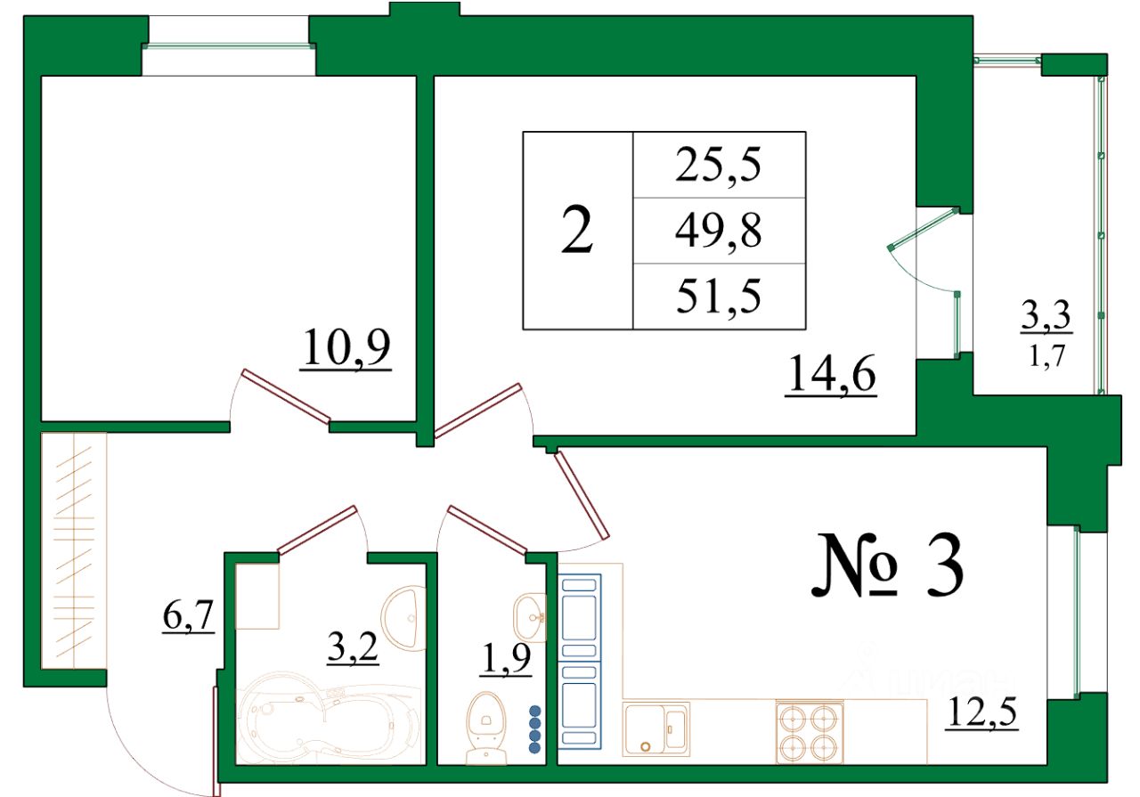 Продаётся 2-комнатная квартира в сданном доме (Корпус 2), срок сдачи: IV-кв. 2024, общей площадью 51.5 кв.м., на 7 этаже. Ленинградская область, Гатчина, Красносельское шоссе