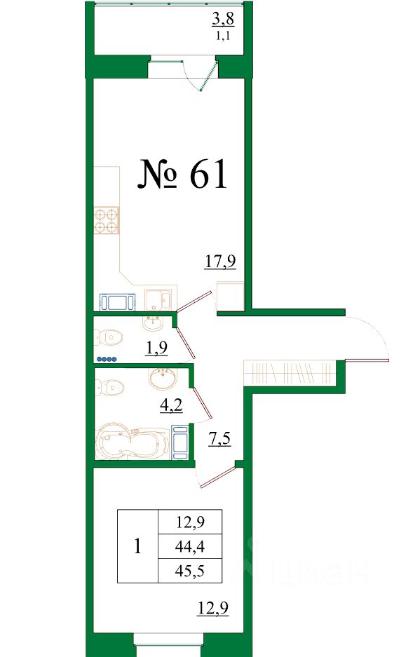 Продаётся 1-комнатная квартира в строящемся доме (Корпус 5), срок сдачи: III-кв. 2025, общей площадью 45.5 кв.м., на 7 этаже. Ленинградская область, Гатчина, Красносельское шоссе
