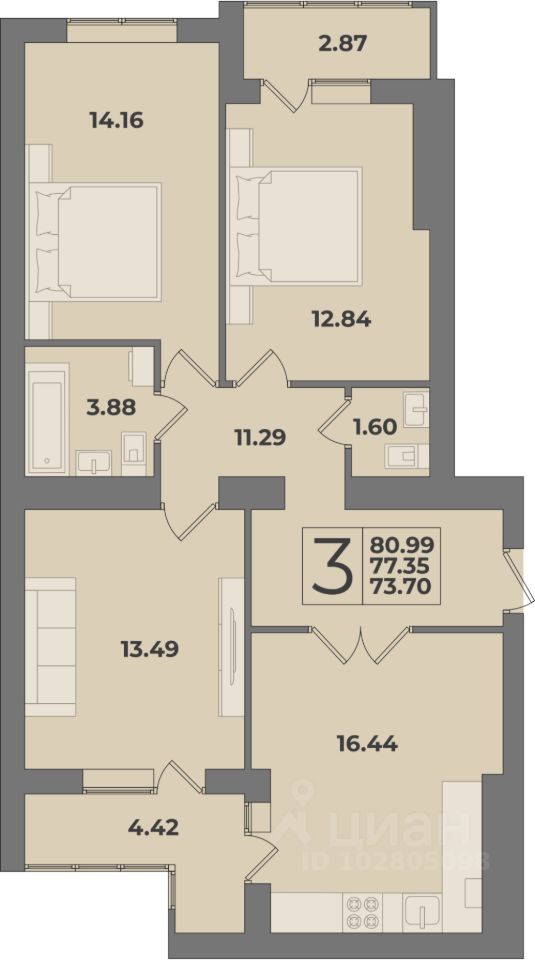 Общая площадь80,99 м2