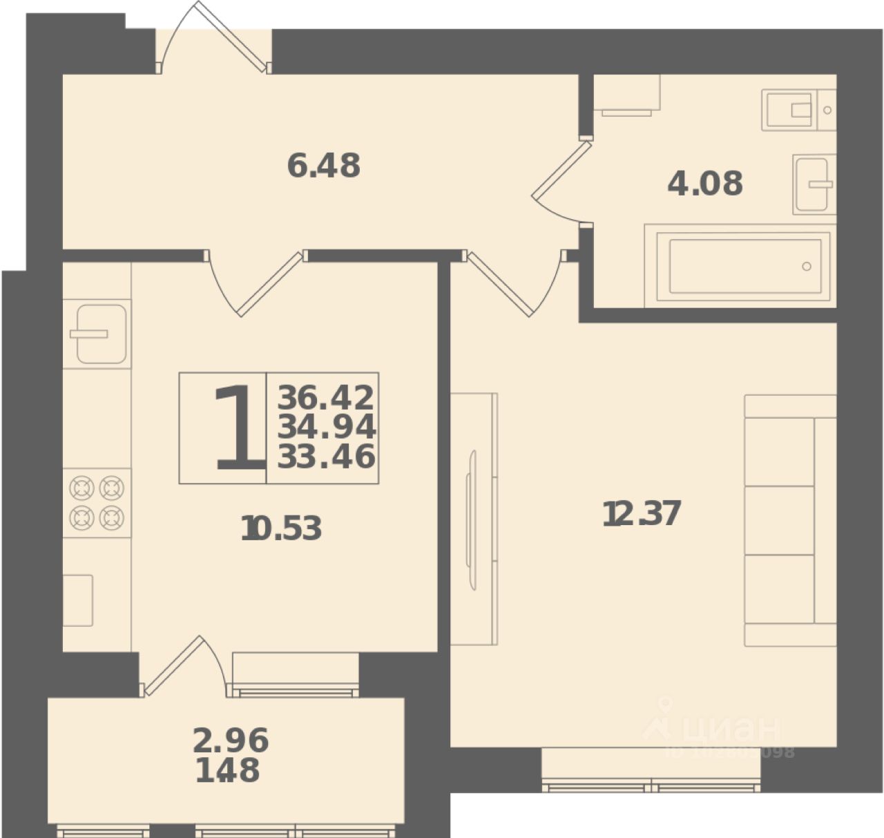 продам 1-к, переулок Сиреневый, 17 308 520 ₽