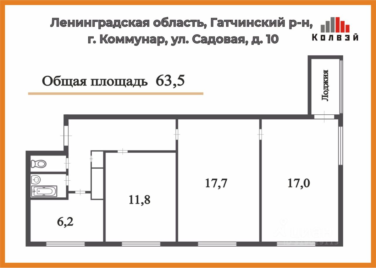 2-11, Предлагаем купить просторную, светлую трехкомнатную квартиру площадью 63,5 м², расположенную на пятом этаже девятиэтажного панельного дома, 1983 года постройки. Планировка квартиры смежно-изолированная. Комнаты 11,8 м²+17,7 м²+17,0 м². Кухня 6,2 м². Застекленная лоджия. Раздельный санузел. Окна, выходят в зеленый двор с детскими площадками и удобной парковкой с круглосуточным наличием парковочных мест. Развитая инфраструктура, обеспечивающая комфортные условия для повседневной жизни. Для любителей активного образа жизни неподалеку находятся спортивные площадки и парки, где можно заниматься спортом или гулять всей семьей. Остановка общественного транспорта рядом с домом, регулярно ходят автобусы до метро Московская, Звёздная, Купчино, а также до г. Гатчина. Также в непосредственной близости железнодорожная платформа Антропшино. Один взрослый собственник. Квартира без долгов и каких-либо обременений! Никто не прописан. Быстрый выход на сделку. Подходит под ипотеку любого банка! Поможем с одобрением ипотечного кредита любой сложности под вашу индивидуальную ситуацию. При приобретении квартиры через наше агентство скидка к ипотечной ставке!