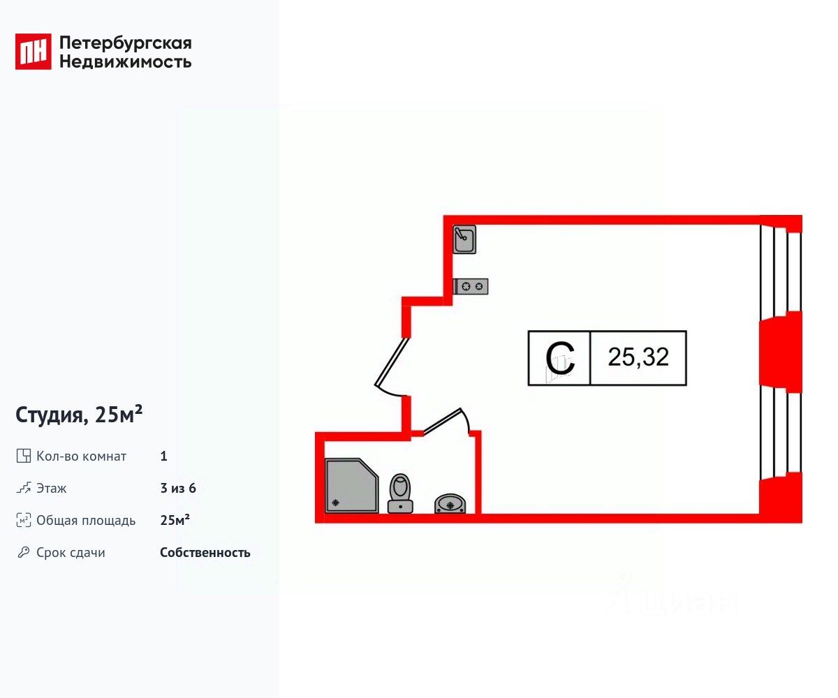 Удобная, классическая, функциональная европланировка. Общая площадь апартаментов - 25 м², высота потолка 3 м.