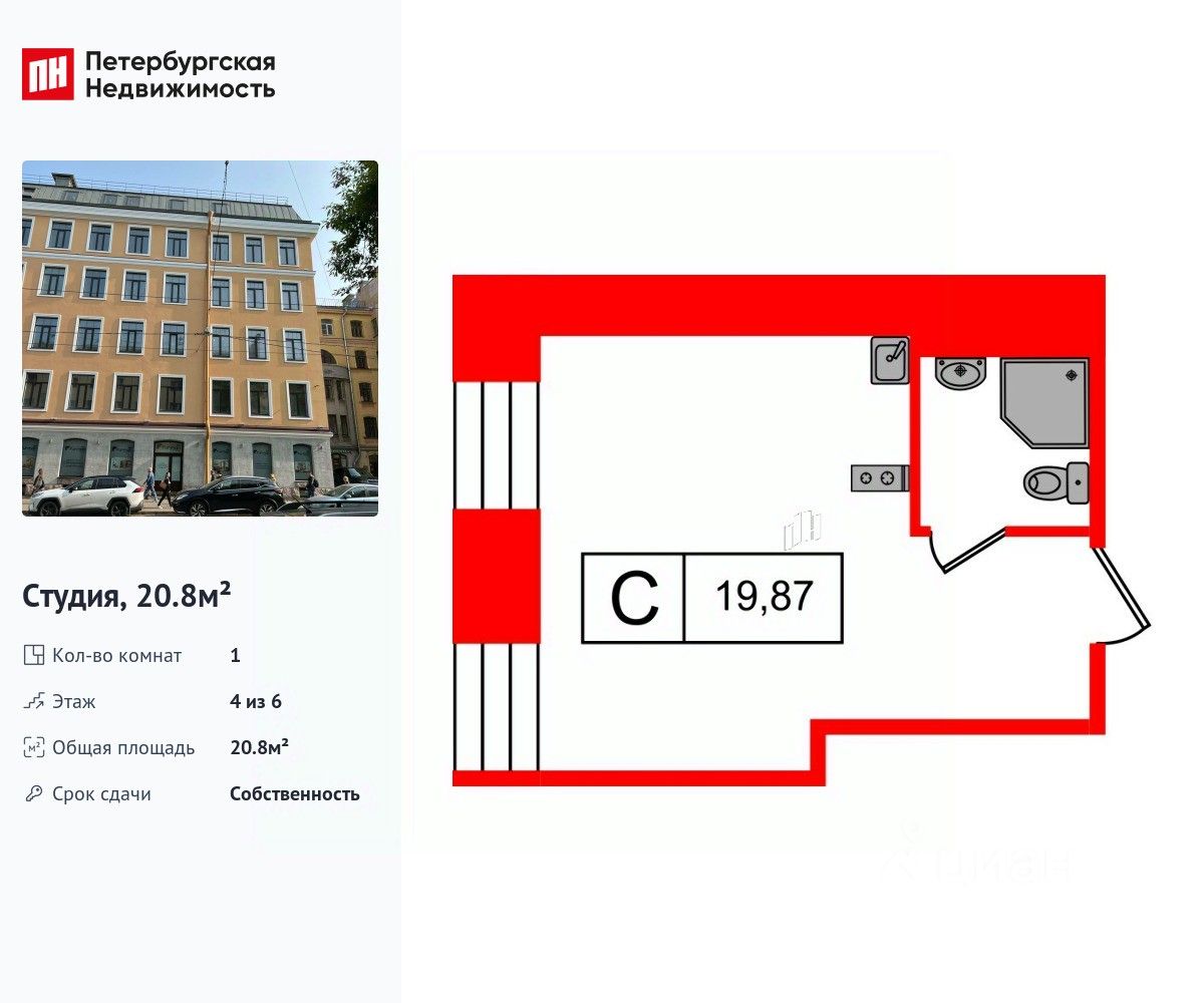 Удобная, классическая, функциональная европланировка. Общая площадь апартаментов - 20.8 м², высота потолка 3 м.