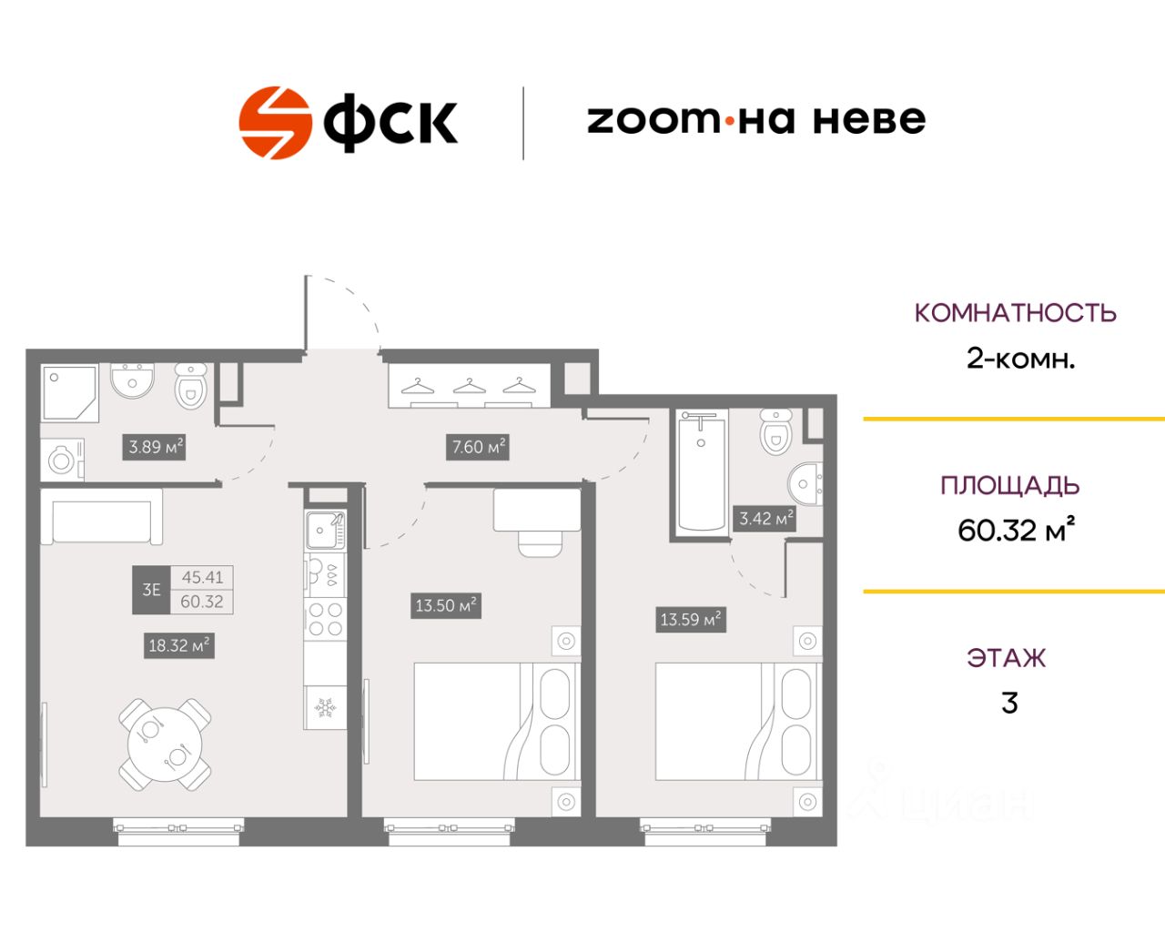 Цена со скидкой до 30% в прямой продаже от застройщика — только в этом месяце. При покупке апартаментов - паркинг за полцены. На все апартаменты действует беспроцентная рассрочка. Купите на распродаже! Покупка недвижимости в Zoom на Неве сейчас со скидкой до 30% позволит через 2 года получить доход до 6 300 000 руб. Роскошные виды на Неву. 2-к апартамент в комплексе класса бизнес-лайт Zoom на Неве на 3-м этаже. Общая площадь 60,32. Без отделки.