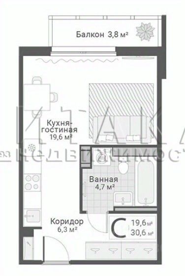 107970663 Студия 30,6 кв.м. с огромным балконом и местами для встроенных шкафов! Развитый район с хорошей инфраструктурой.