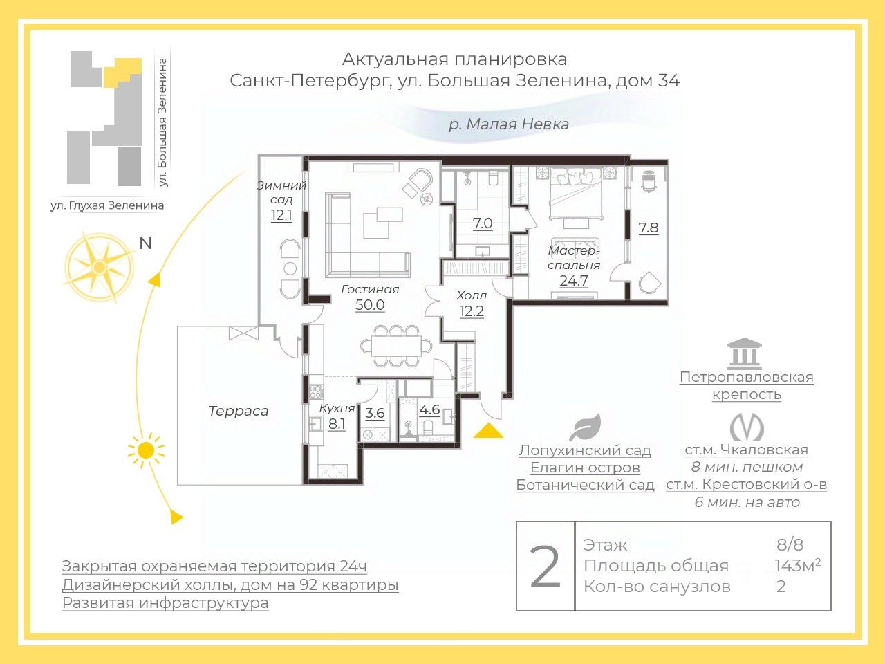Арт. 105549713 Видовая квартира с террасой в центре Петроградского района! Авторский дизайн, безупречный ремонт. Эстетика в каждой детали! Атмосфера уюта и комфорта. Квартира полностью готова для проживания и ждет своего нового хозяина! Располагается на последнем, восьмом, этаже, что является одним из её неоспоримых преимуществ, благодаря завораживающему виду на перспективу города. Дом построен в стиле модерн и неоклассицизм, в облицовке фасадов использовался натуральный камень, на верхних этажах- мозаичное панно. В доме всего 92 квартиры, что подчеркивает его статус. Имеется консьерж-сервис, охрана и камеры видеонаблюдения по всему периметру ЖК, а также закрытая благоустроенная территория с местами для отдыха, детской площадкой и собственным сквером. ЖК находится в уже давно сформировавшемся районе и имеет отличную инфраструктуру вокруг: магазины, рестораны, медицинские центры, лучшие образовательные учреждения, а также Петропавловская крепость, Ленинградский зоопарк, Лопухинский сад , Елагин остров, Ботанический сад Петра Великого и многие другие доминанты города в пешей доступности. Также, по желанию, можно приобрести машиноместо в подземном паркинге. Показы по договоренности в любое удобное для Вас время!