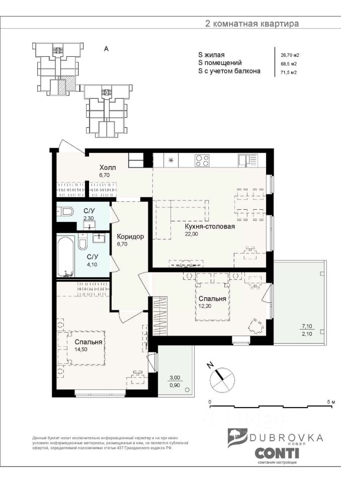 Продажа квартира в новостройке, Ленинградская область, Всеволожский район, Дубровское городское поселение, городской посёлок Дубровка, коттеджный посёлок Новая Дубровка, улица Достоевского, 1