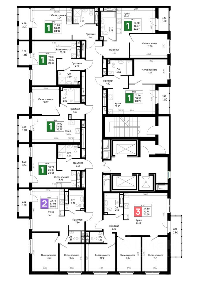 Литер 5.1, 7 этаж, 41. -------------------- Продажа квартира в новостройке, Ленинградская область, Всеволожский район, Свердловское городское поселение, деревня Новосаратовка, улица Первых --------------------