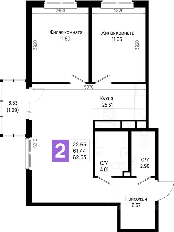 продам 2-к, Свердловское городское поселение8 253 960 ₽