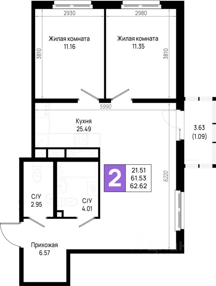 продам 2-к, Свердловское городское поселение8 265 840 ₽