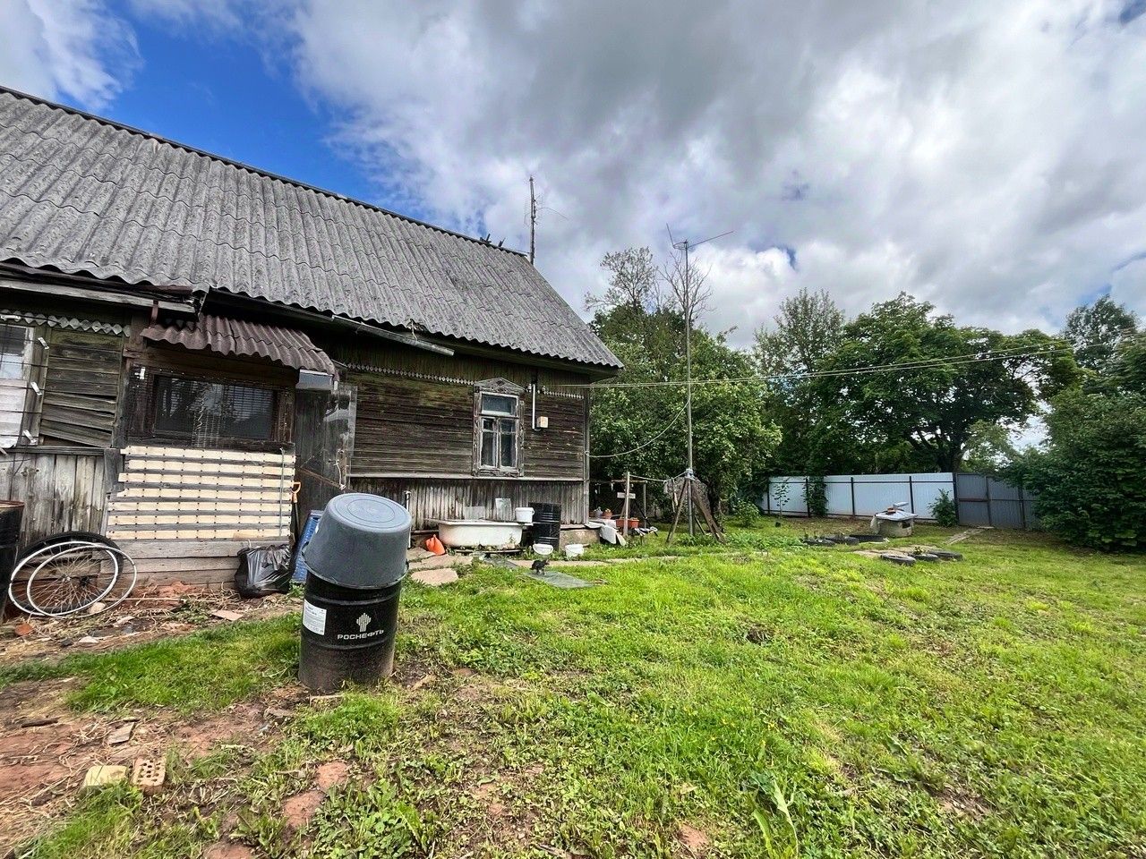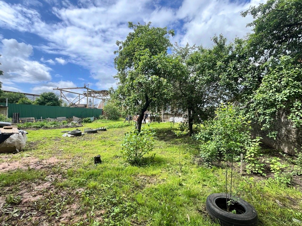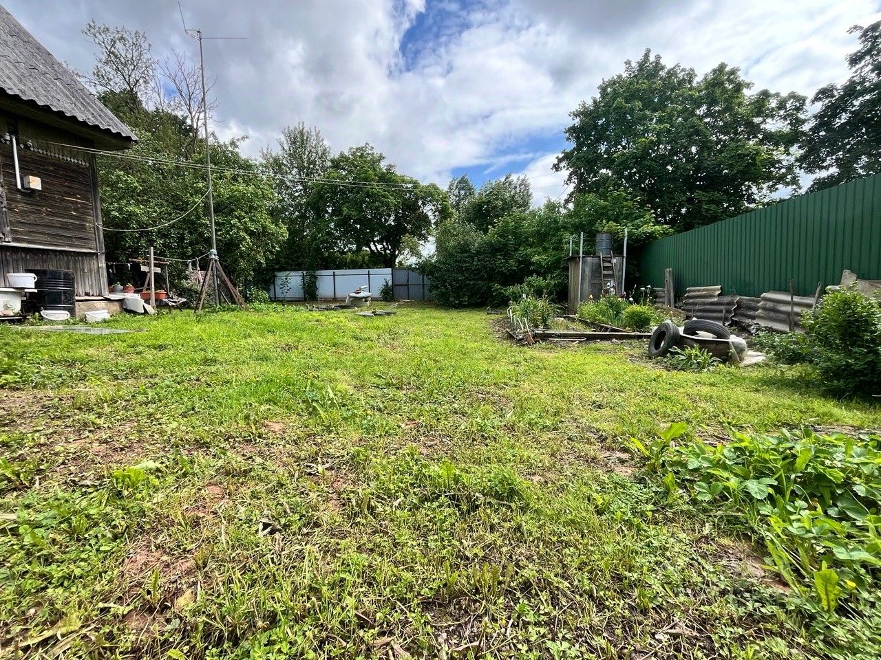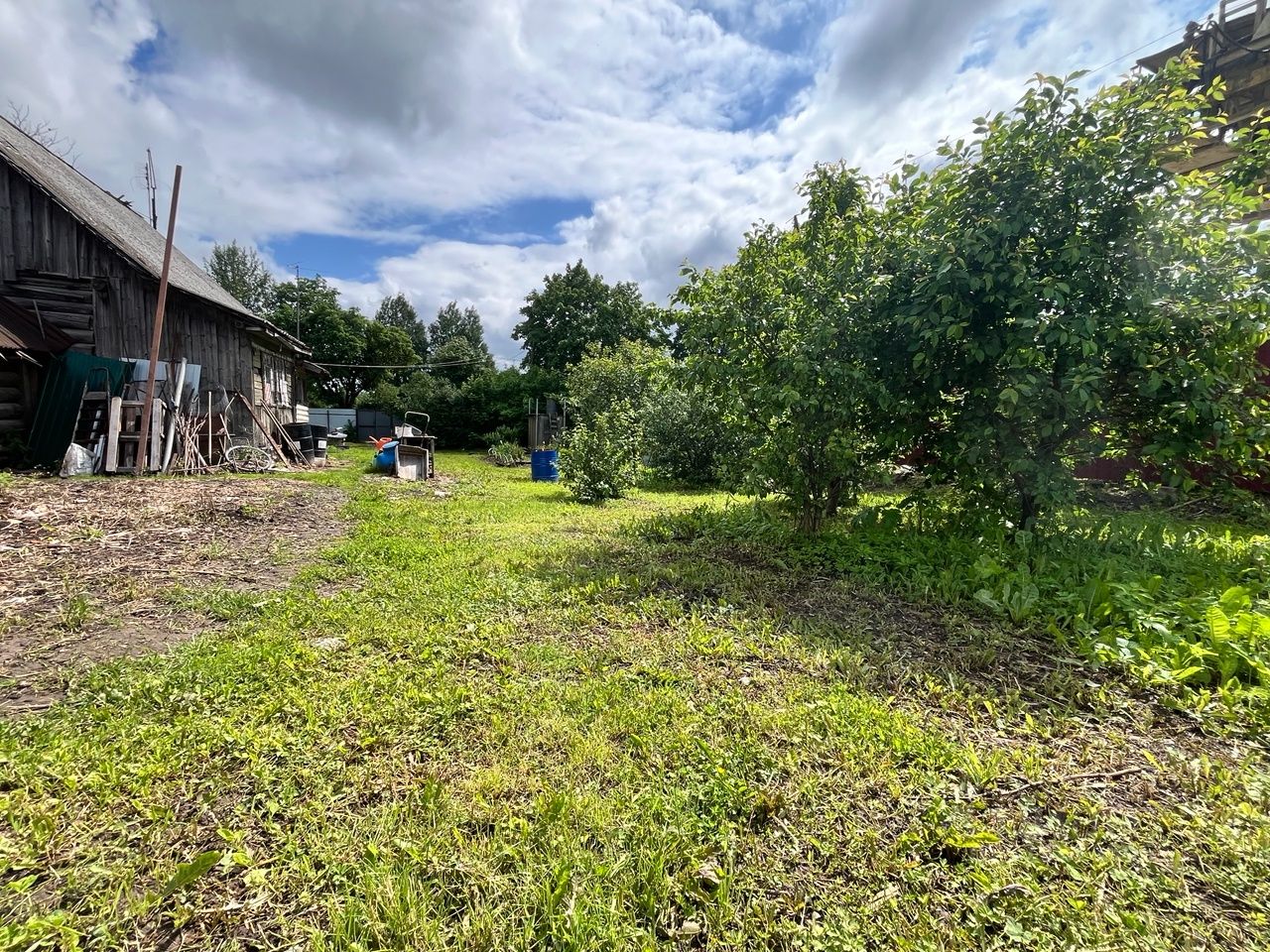 На участке стоит крепкий дом 1957 года, 59 м². Он не новый, но в нём есть всё, чтобы вы сразу переехали и жили с комфортом. Дом на надёжном фундаменте, под ним — сухой погреб. Внутри — печное отопление, 5,5 кВт электричества, горячая вода от бойлера, установлена стиральная машина и есть городской туалет. Всё работает, всё готово для жизни, пока вы без спешки строите свой большой, новый дом.