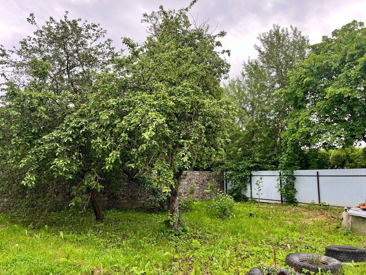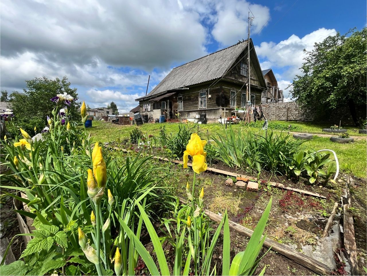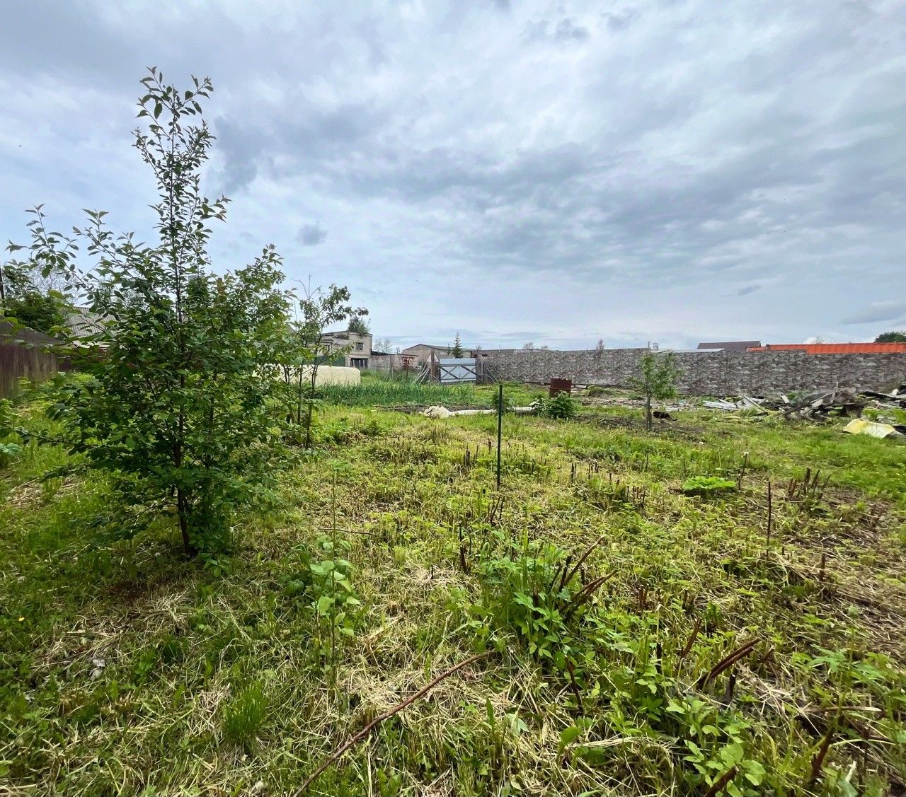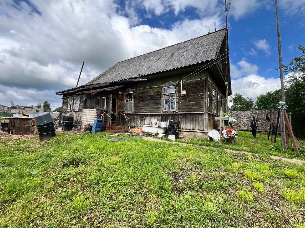 На участке стоит крепкий дом 1957 года, 59 м². Он не новый, но в нём есть всё, чтобы вы сразу переехали и жили с комфортом. Дом на надёжном фундаменте, под ним — сухой погреб. Внутри — печное отопление, 5,5 кВт электричества, горячая вода от бойлера, установлена стиральная машина и есть городской туалет. Всё работает, всё готово для жизни, пока вы без спешки строите свой большой, новый дом.